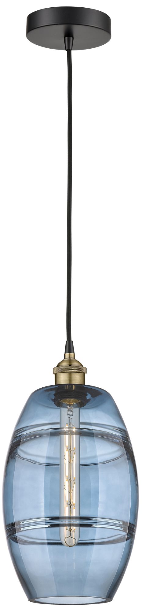 Edison Vaz 8"W Black Antique Brass Corded Mini Pendant w/ Blue Shade
