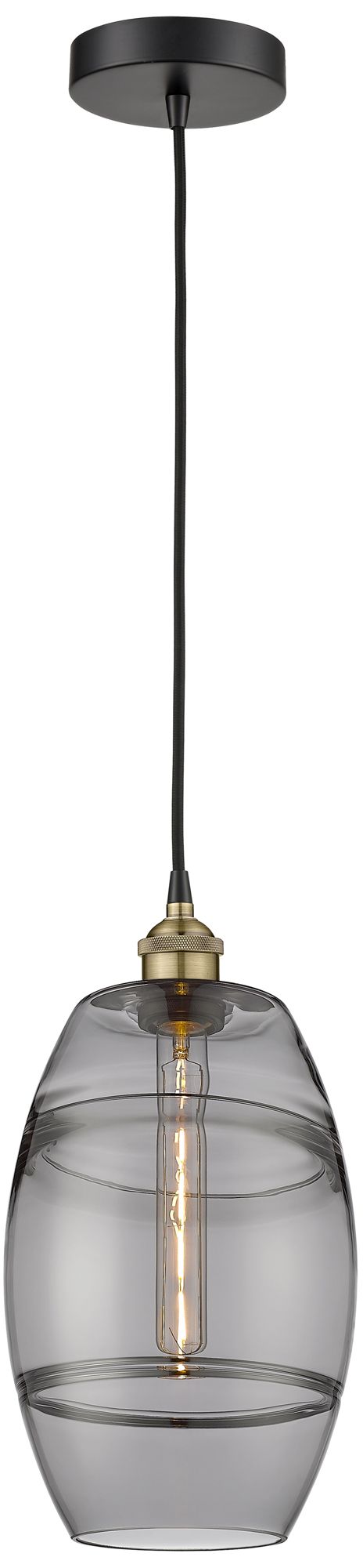Edison Vaz 8"W Black Antique Brass Corded Mini Pendant w/ Light Smoke