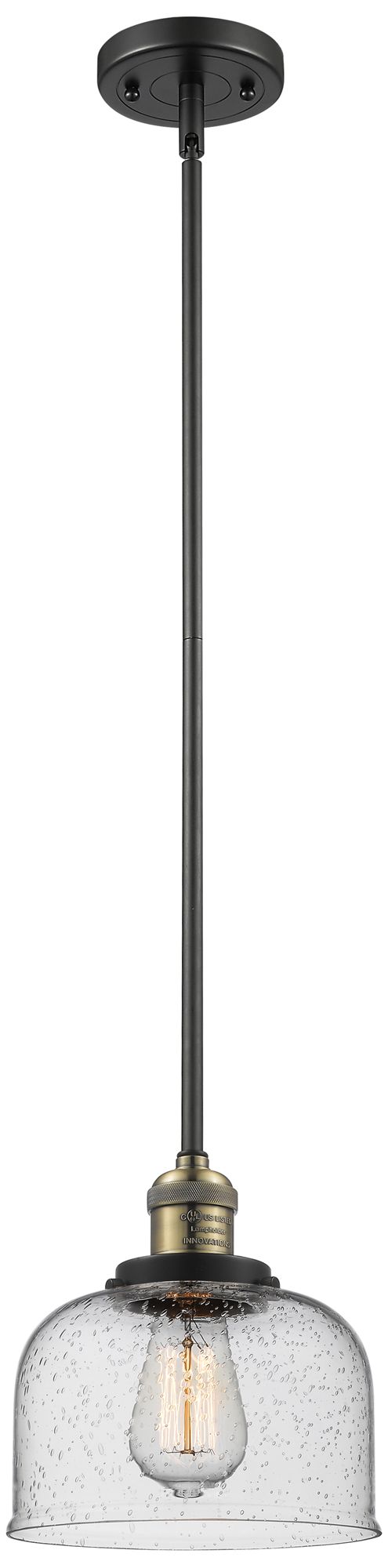 Franklin Bell 8" Black Brass Stemmed Mini Pendant w/ Seedy Shade