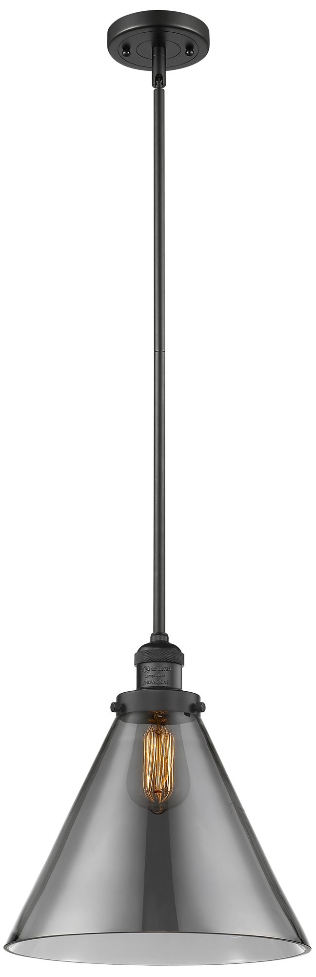 Franklin Cone 12" Matte Black Stemmed Mini Pendant w/ Smoke Shade