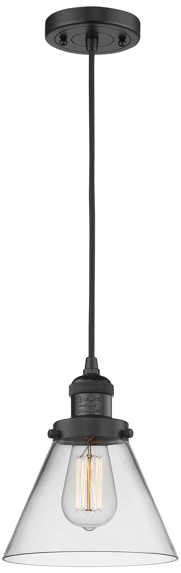 Franklin Restoration Cone 8" Matte Black Corded Mini Pendant w/ Clear