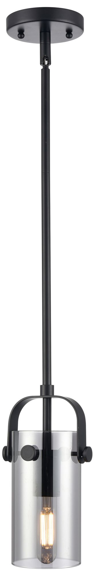 Pilaster II Cylinder 5"W Matte Black Stemmed Pendant w/ Plated Smoke S