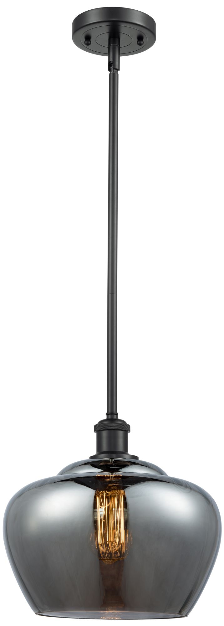 Edison Athens 8"W Black Brass Stemmed Mini Pendant w/ Smoke Swirl Shad