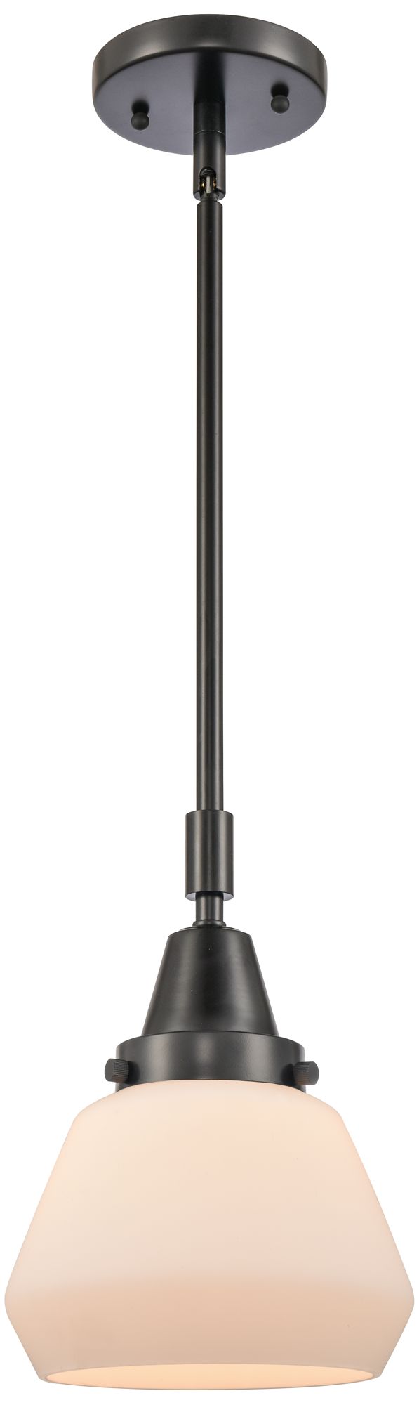 Caden Fulton 7" Wide Matte Black Stem Hung Mini Pendant w/ White Shade