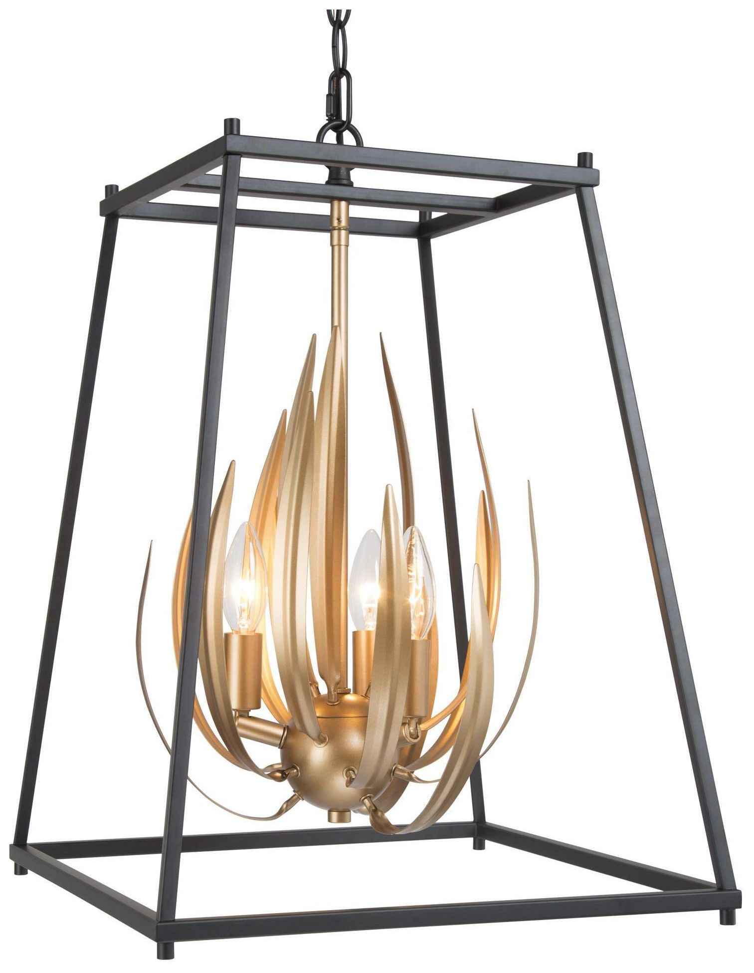 Jonas 15" Wide Gold Black Metal 3-Light Lantern Chandelier