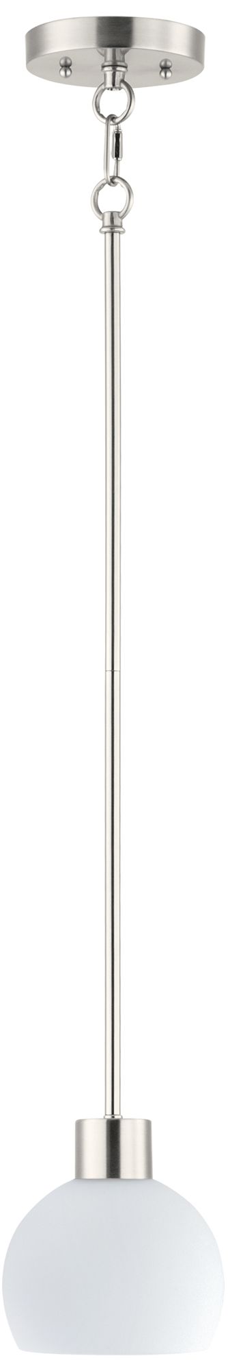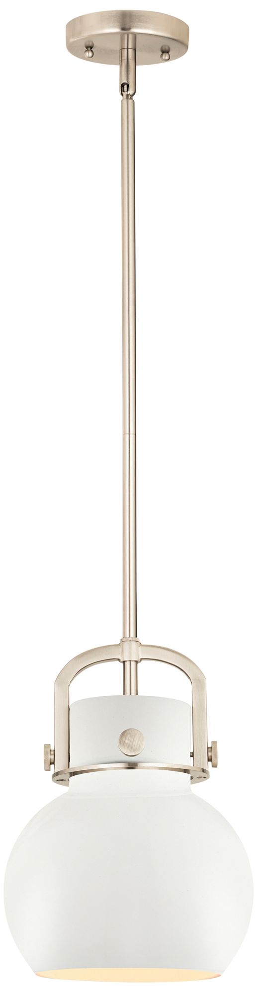 Newton Metal Sphere 8"W Satin Nickel Stemmed Pendant w/ Matte White Sh