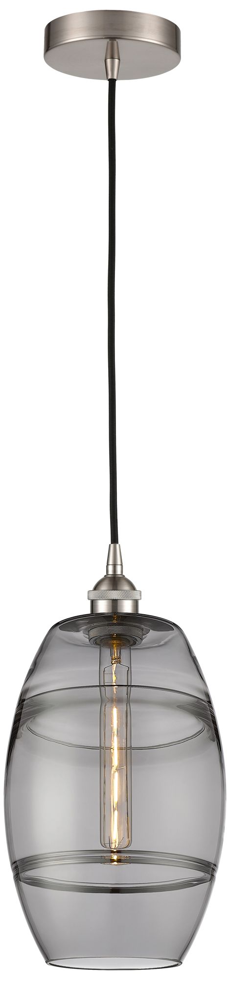 Edison Vaz 8"W Satin Nickel Corded Mini Pendant w/ Light Smoke Shade