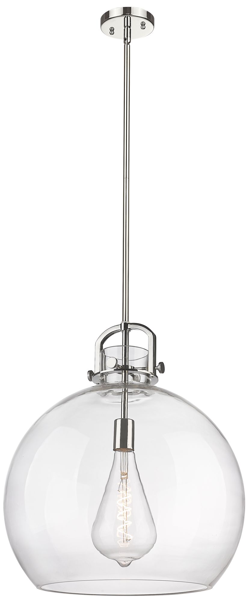 Newton Sphere 18" Wide Stem Hung Polished Nickel Pendant With Clear Sh