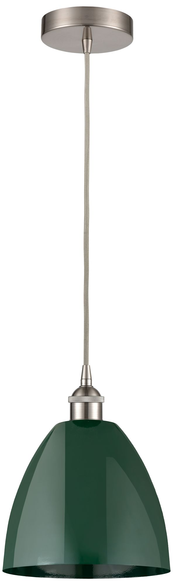 Plymouth Dome 9"W Brushed Satin Nickel Corded Mini Pendant w/ Green Sh