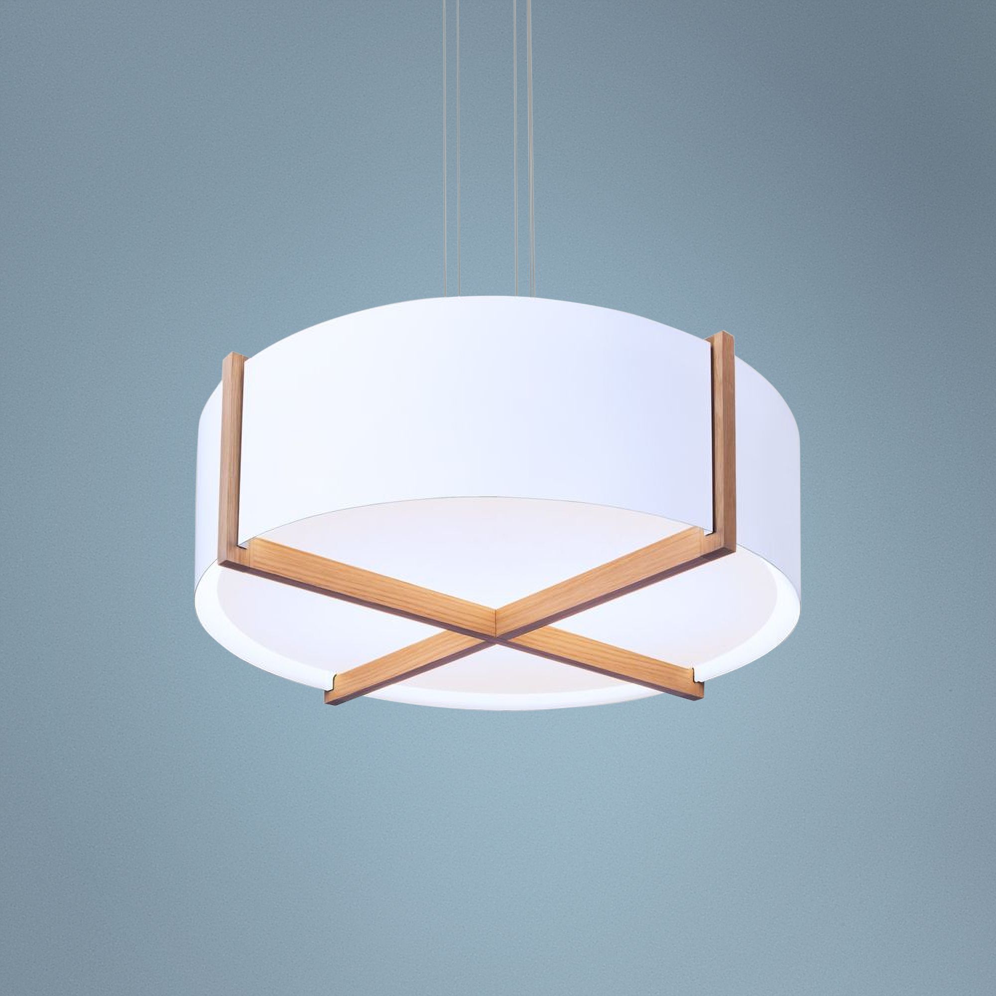 Ignis 24" Wide White Washed Oak Gloss White Modern LED Pendant Light