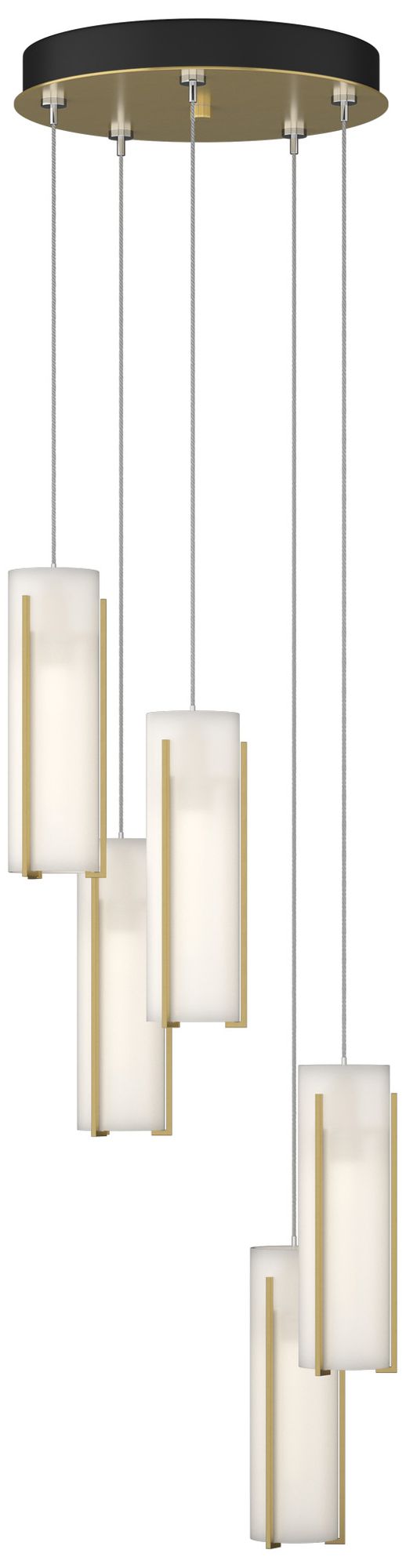 Exos Glass 5-Light 13.5" Wide Modern Brass Long Pendant w/ Opal Glass