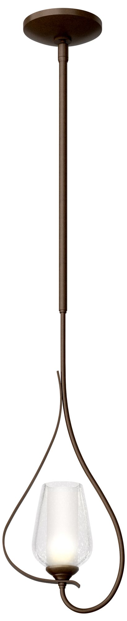 Flora 7.6"W Bronze Up Light Mini-Pendant With Opal and Seeded Glass Sh
