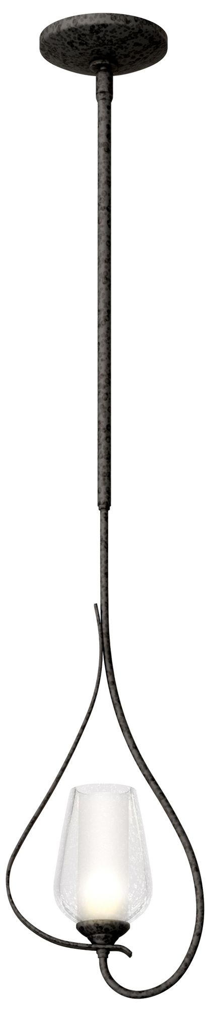Flora 7.6"W Iron Up Light Mini-Pendant w/ Opal and Seeded Glass Shade