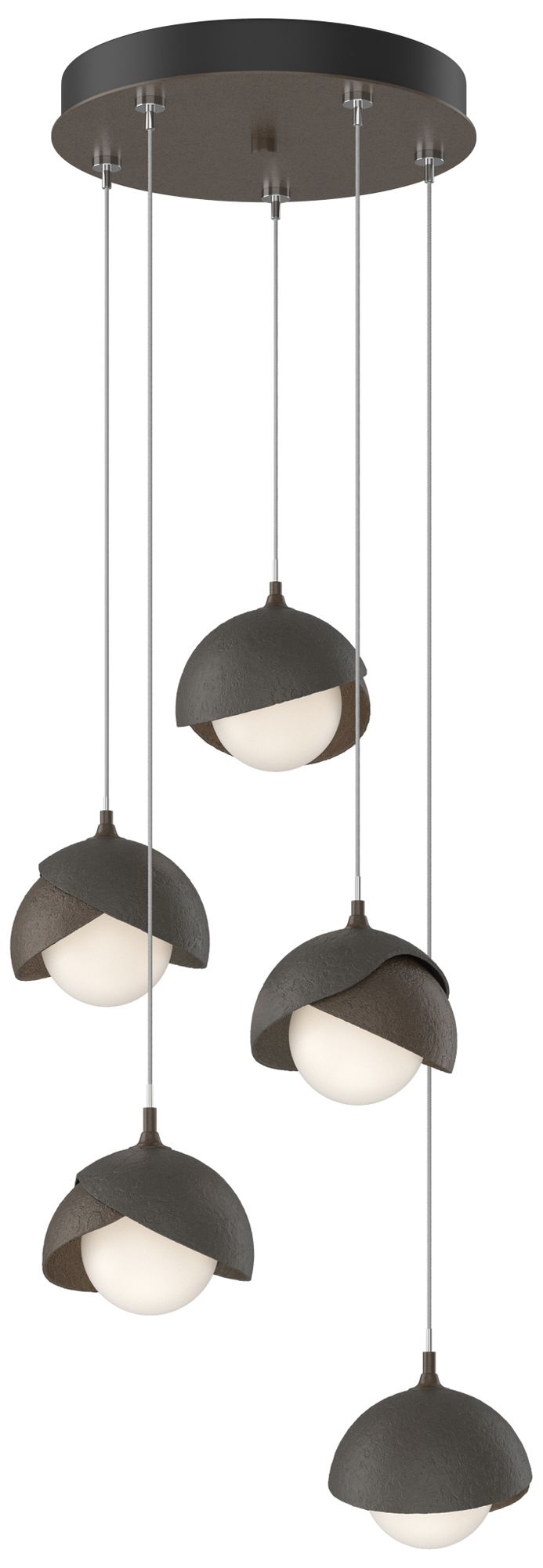 Brooklyn 16"W 5-Light Iron Accented Oiled Bronze Double Shade Pendant