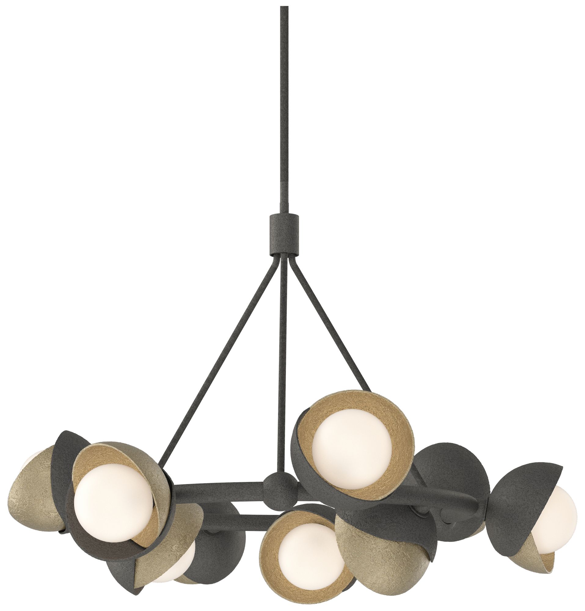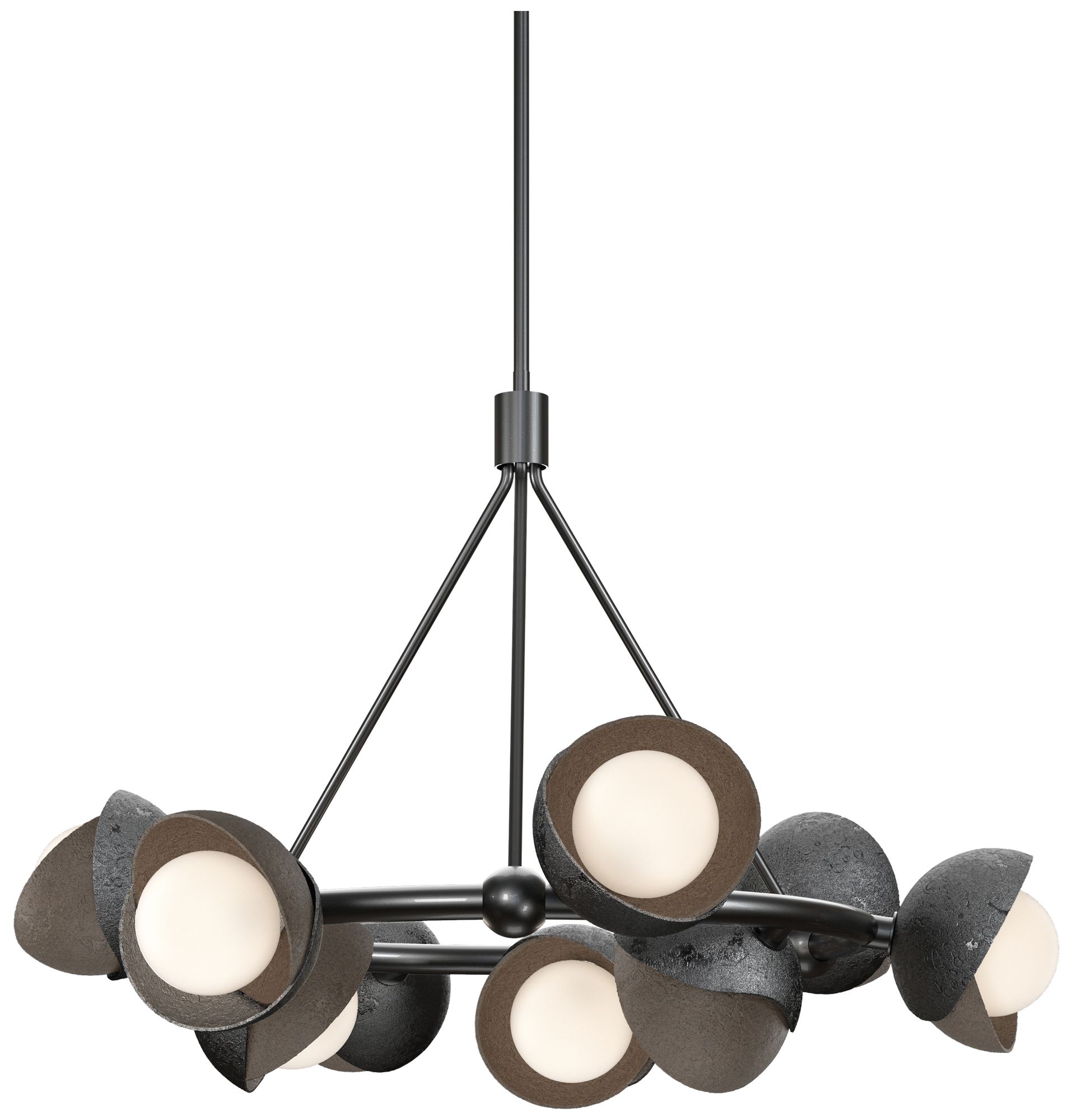 Brooklyn 32"W 9-Light Bronze Accented Ink Ring Pendant w/ Double Opal