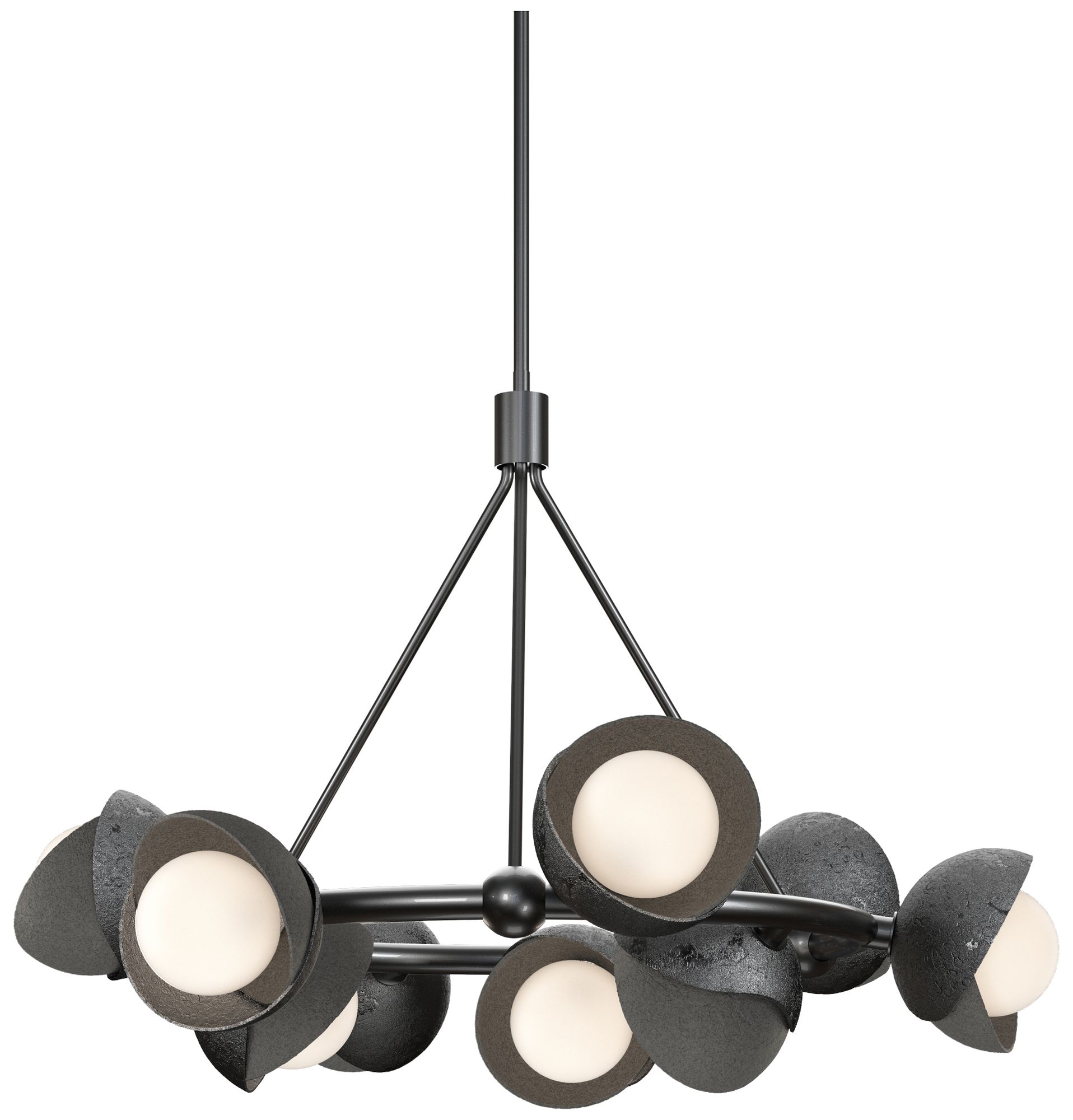 Brooklyn 32"W 9-Light Iron Accented Ink Ring Pendant w/ Double Opal Sh