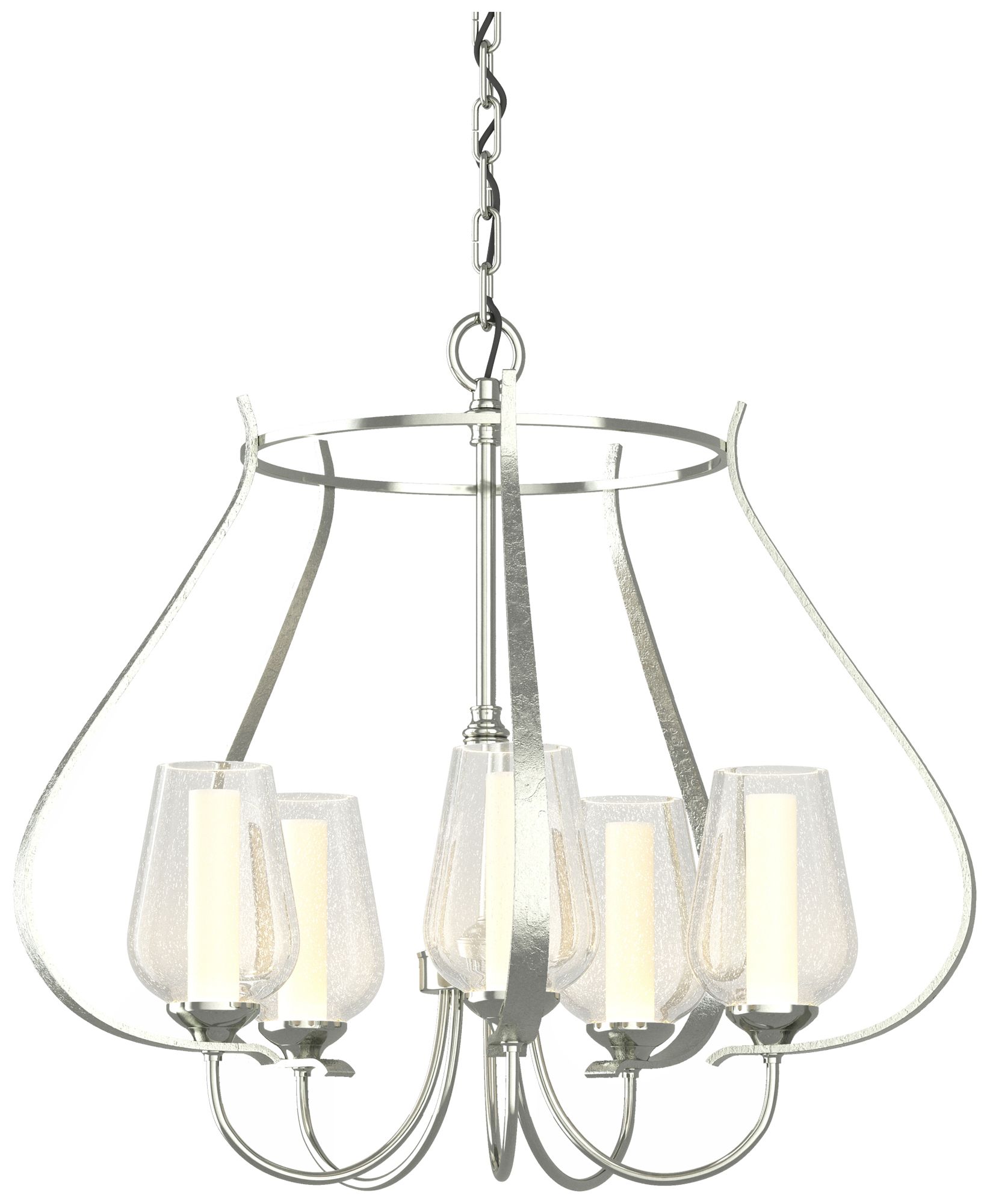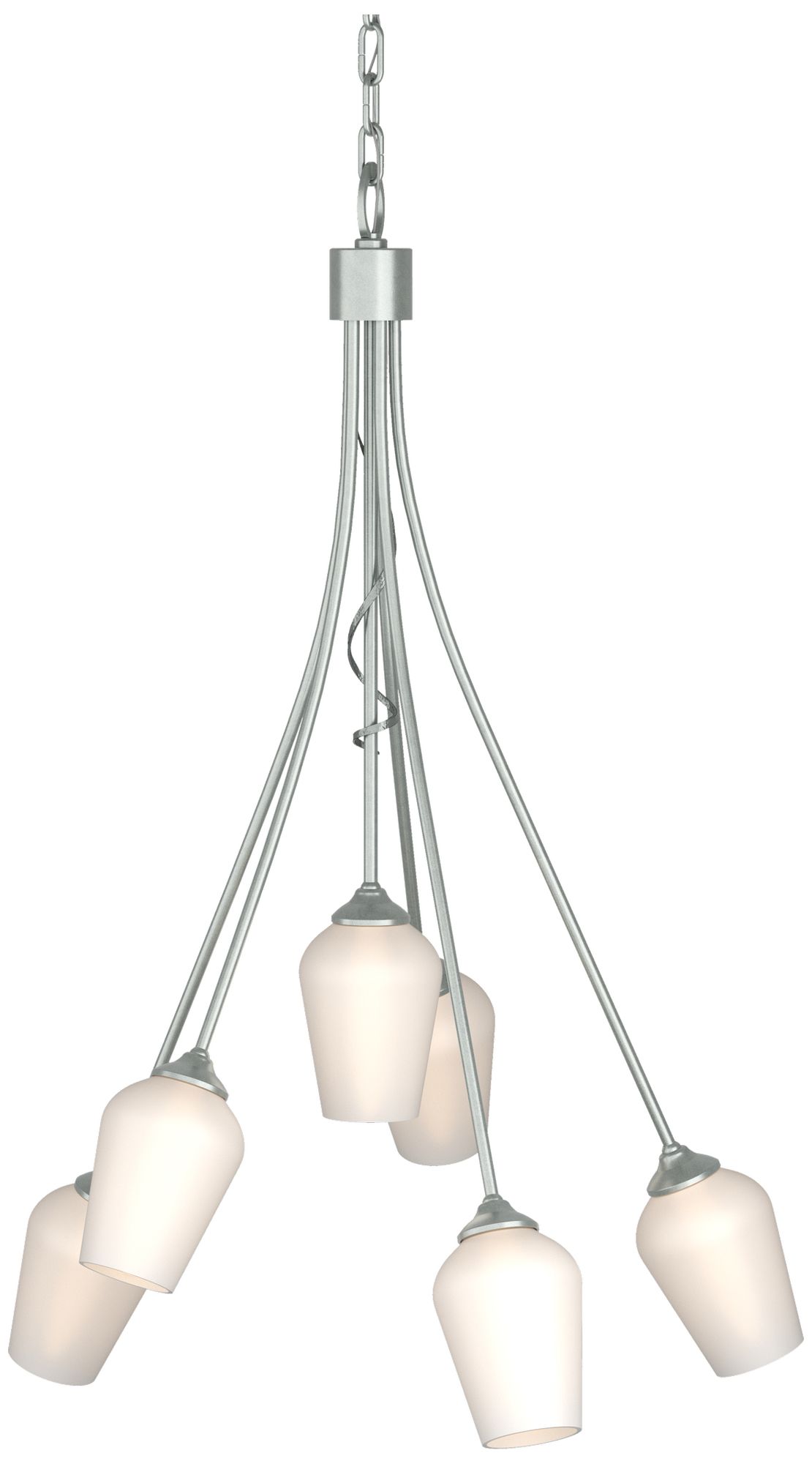 Flora 22.2" Wide 5 Arm Sterling Chandelier With Opal and Seeded Glass