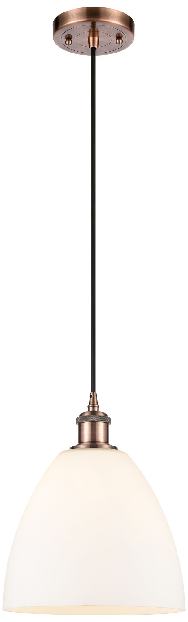 Ballston Bristol Glass 9" LED Mini Pendant - Antique Copper - Matte Wh