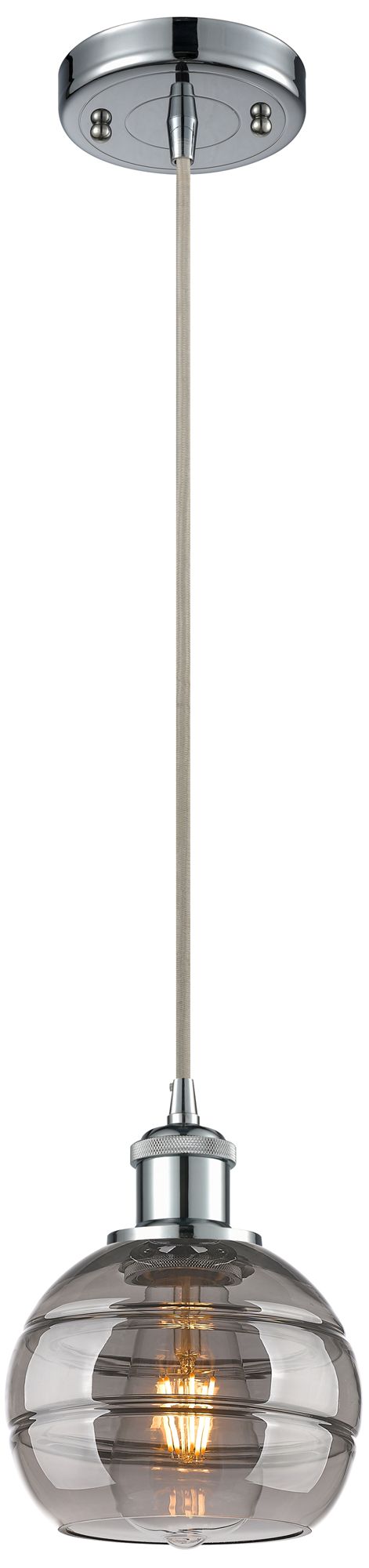 Ballston Rochester 5.88"W Chrome Corded Mini Pendant w/ Light Smoke Sh