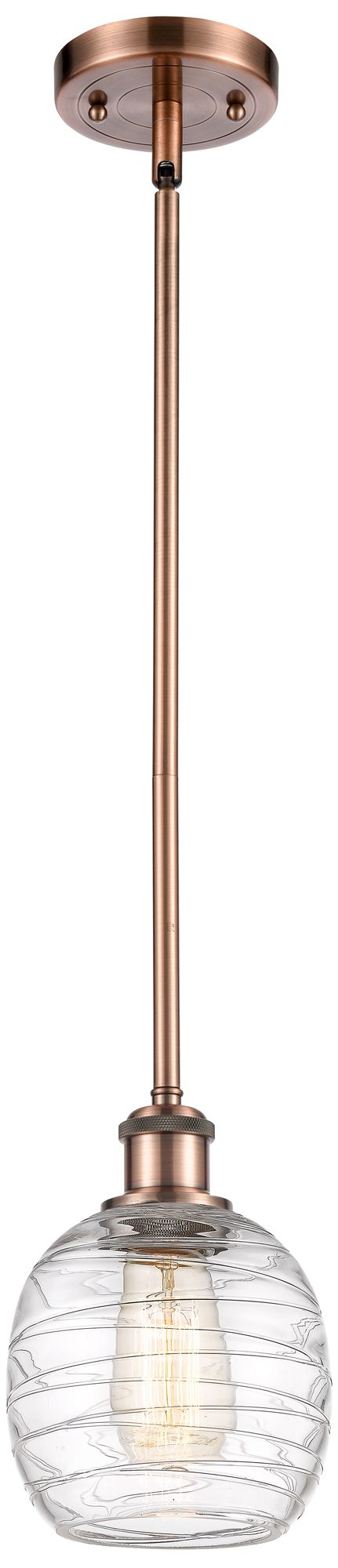 Belfast 6" Antique Copper Mini Pendant w/ Deco Swirl Shade