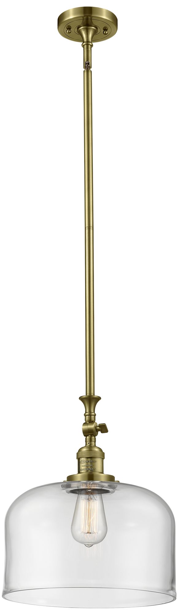 Bell 12" Antique Brass Stem Hung Mini Pendant w/ Clear Shade