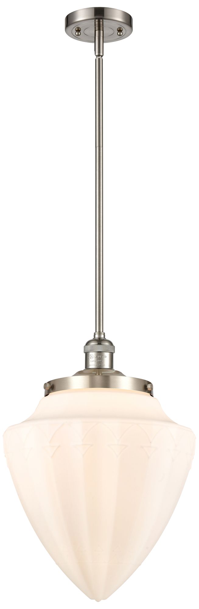 Bullet 12"W Brushed Satin Nickel Stem Hung Mini Pendant With White Sha