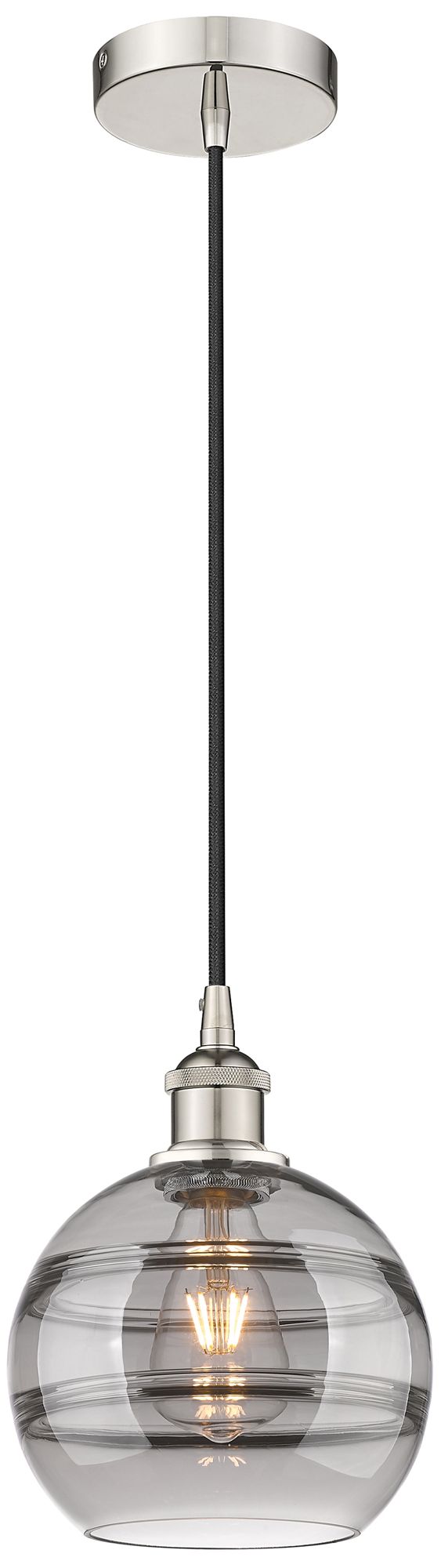 Edison Rochester 8"W Polished Nickel Corded Mini Pendant w/ Smoke Shad