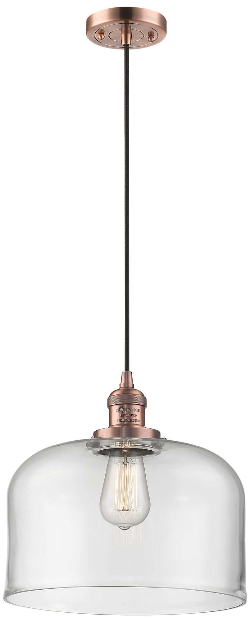 Franklin Restoration Bell 12" Copper Corded Mini Pendant w/ Clear Shad