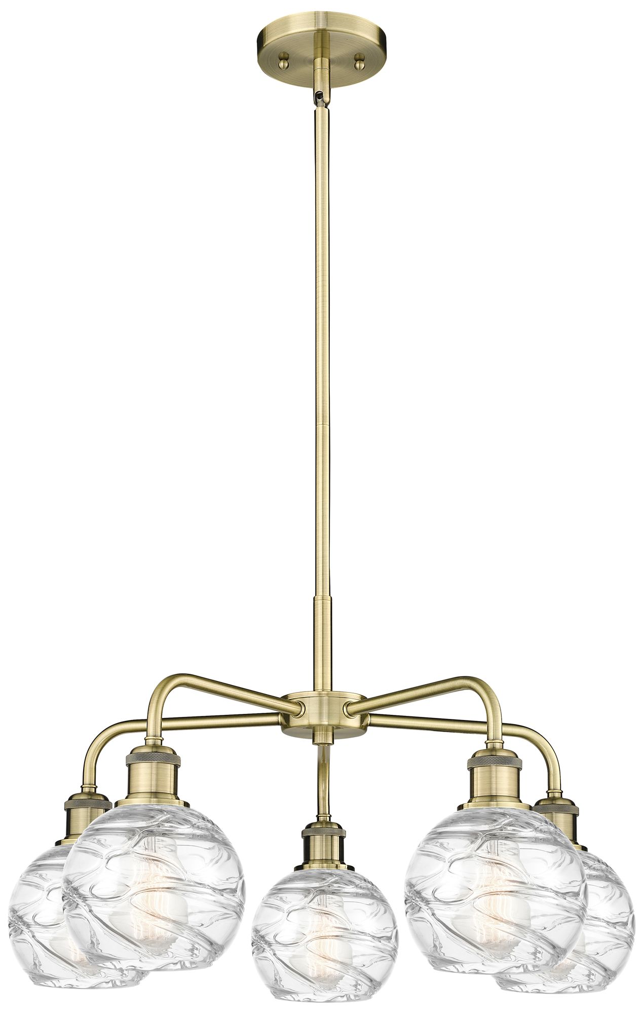 Athens 23.88"W 5 Light Antique Brass Stem Chandelier w/ Deco Swirl Sha