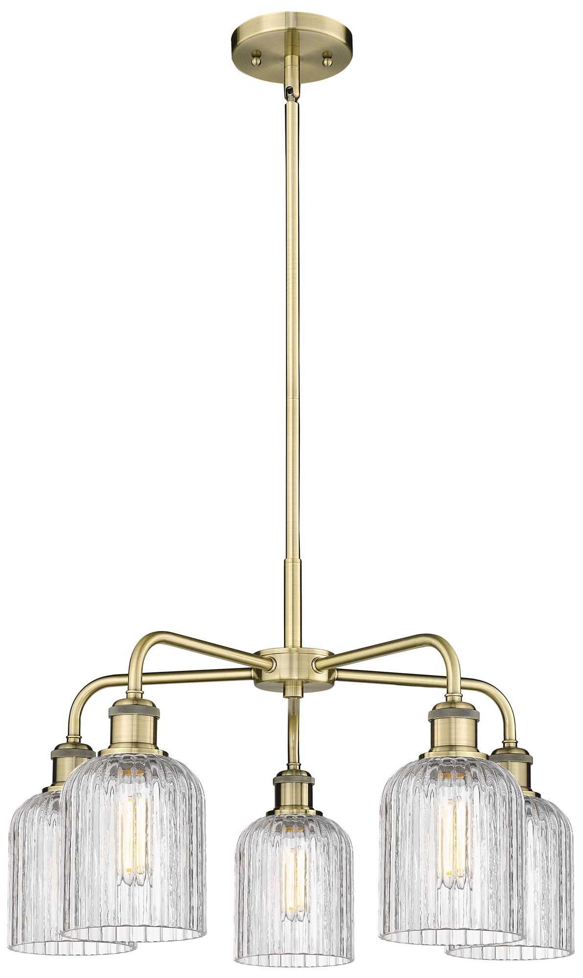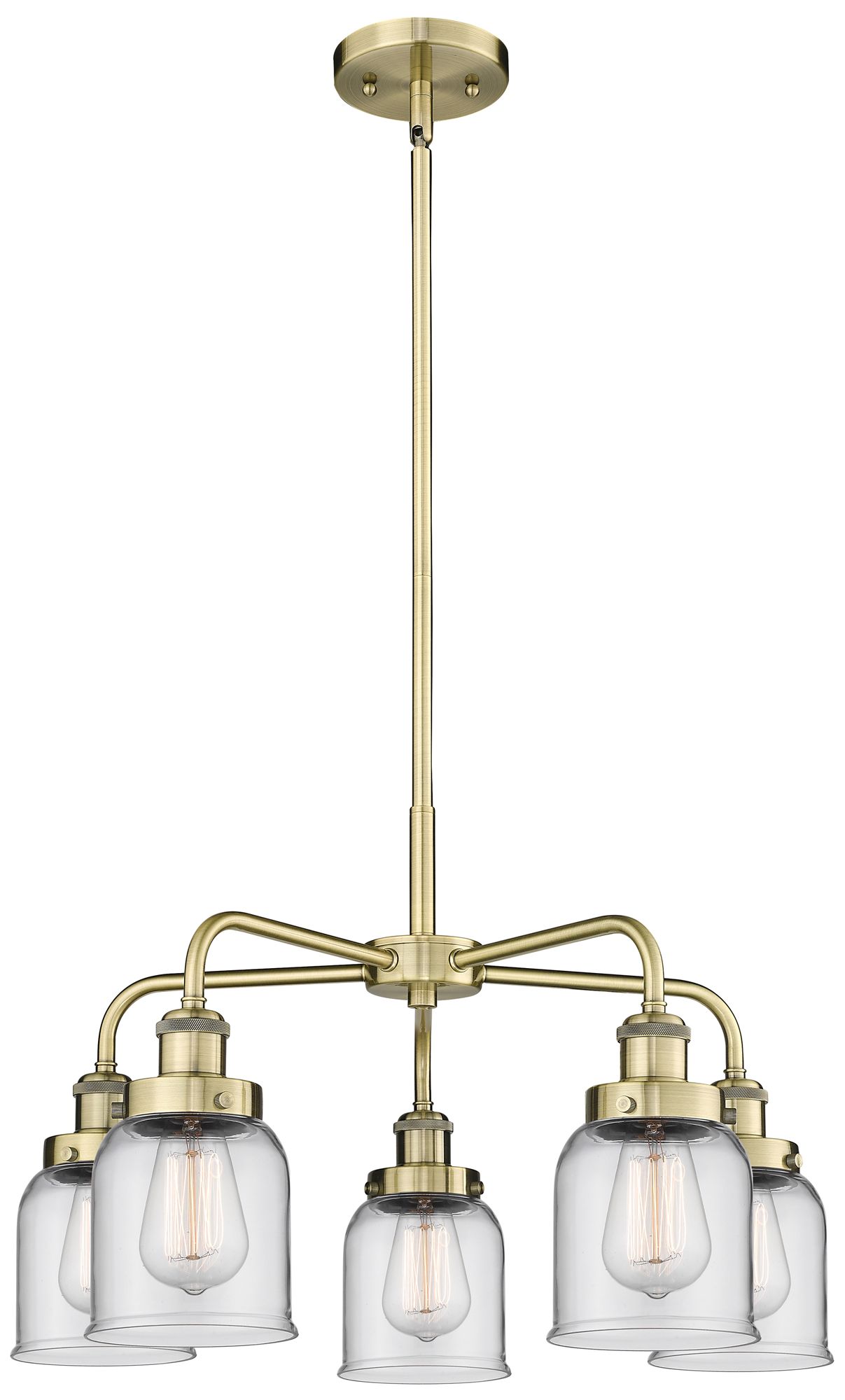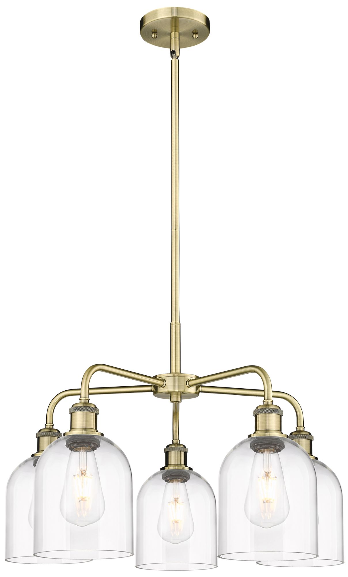 Bell 23"W 5 Light Antique Brass Stem Hung Chandelier With Clear Glass