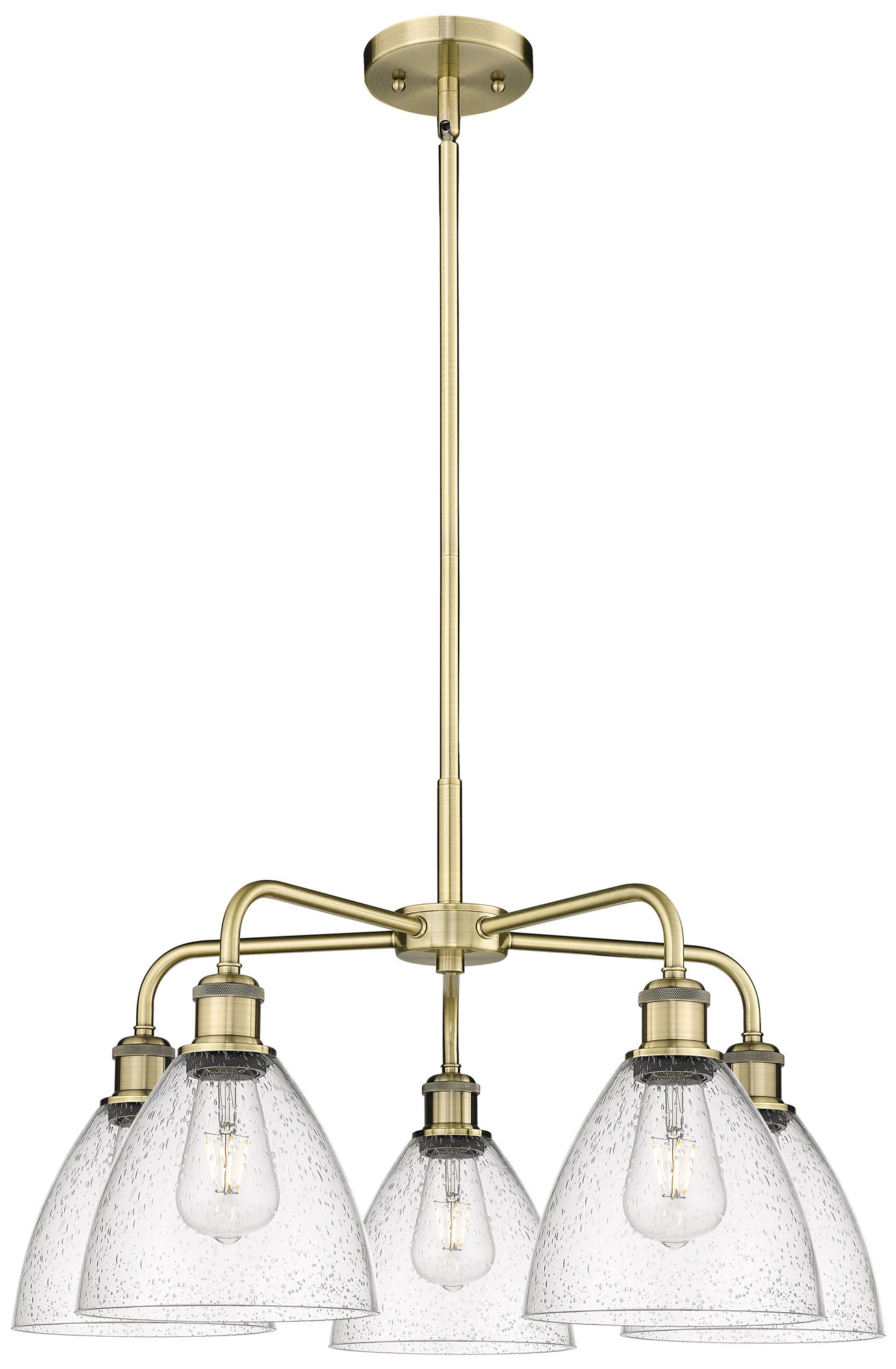 Berkshire 26"W 5 Light Antique Brass Stem Hung Chandelier With Seedy S
