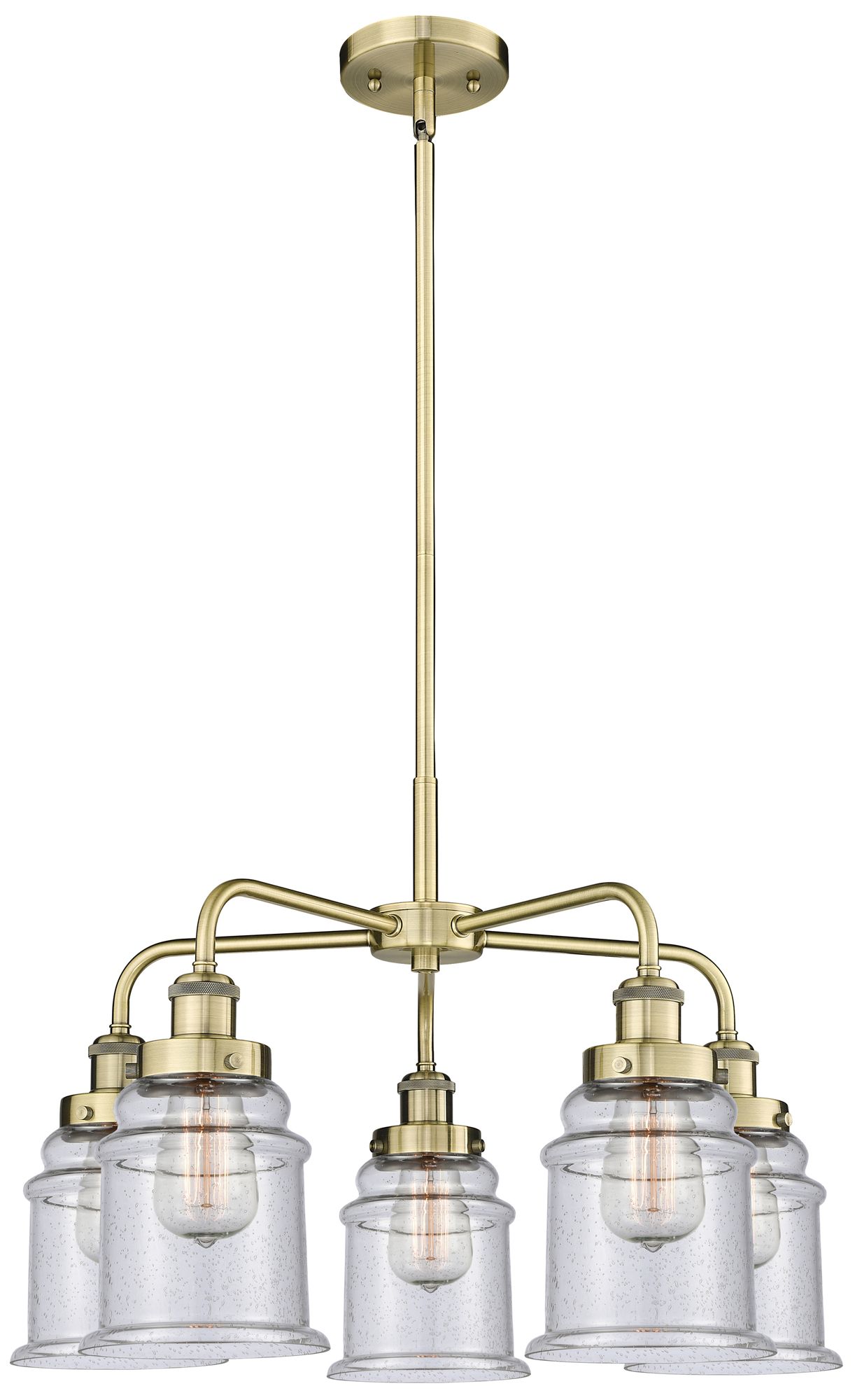 Canton 24"W 5 Light Antique Brass Stem Hung Chandelier w/ Seedy Glass