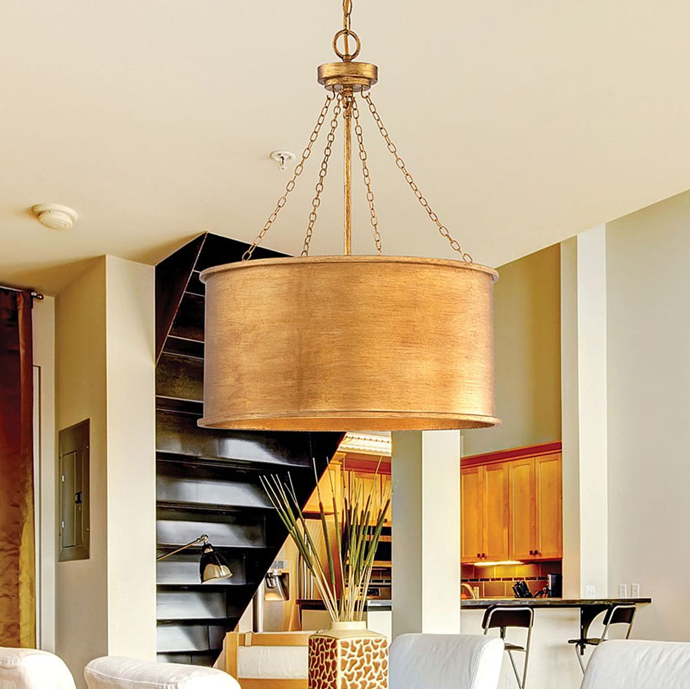 Arabella 21" Wide Distressed Gold Drum Pendant Light