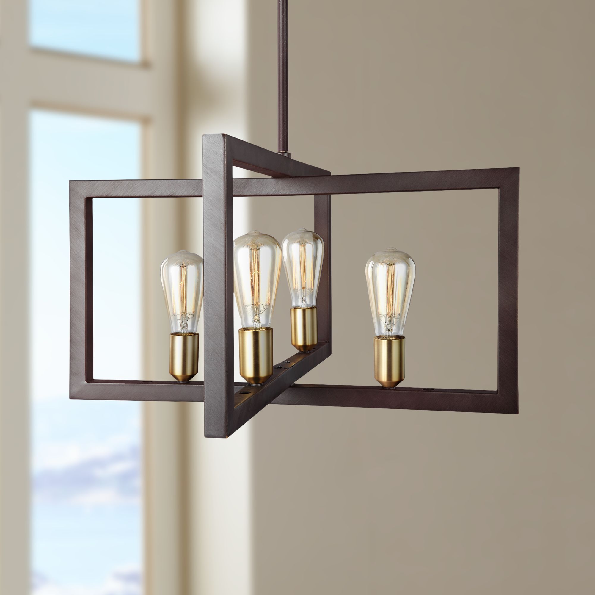 Franklin Iron Works Queluz 13" Wide Bronze 4-Light Entry Pendant Light