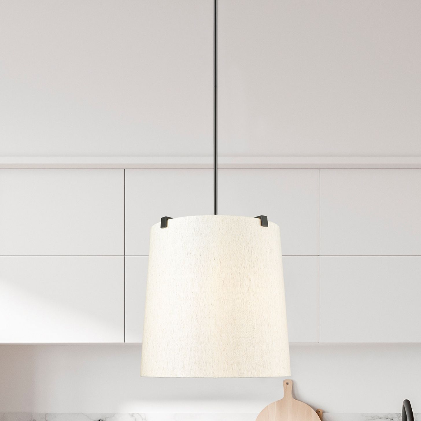 Justice Design Textile Finials 24" Cream Fabric Drum Pendant Light