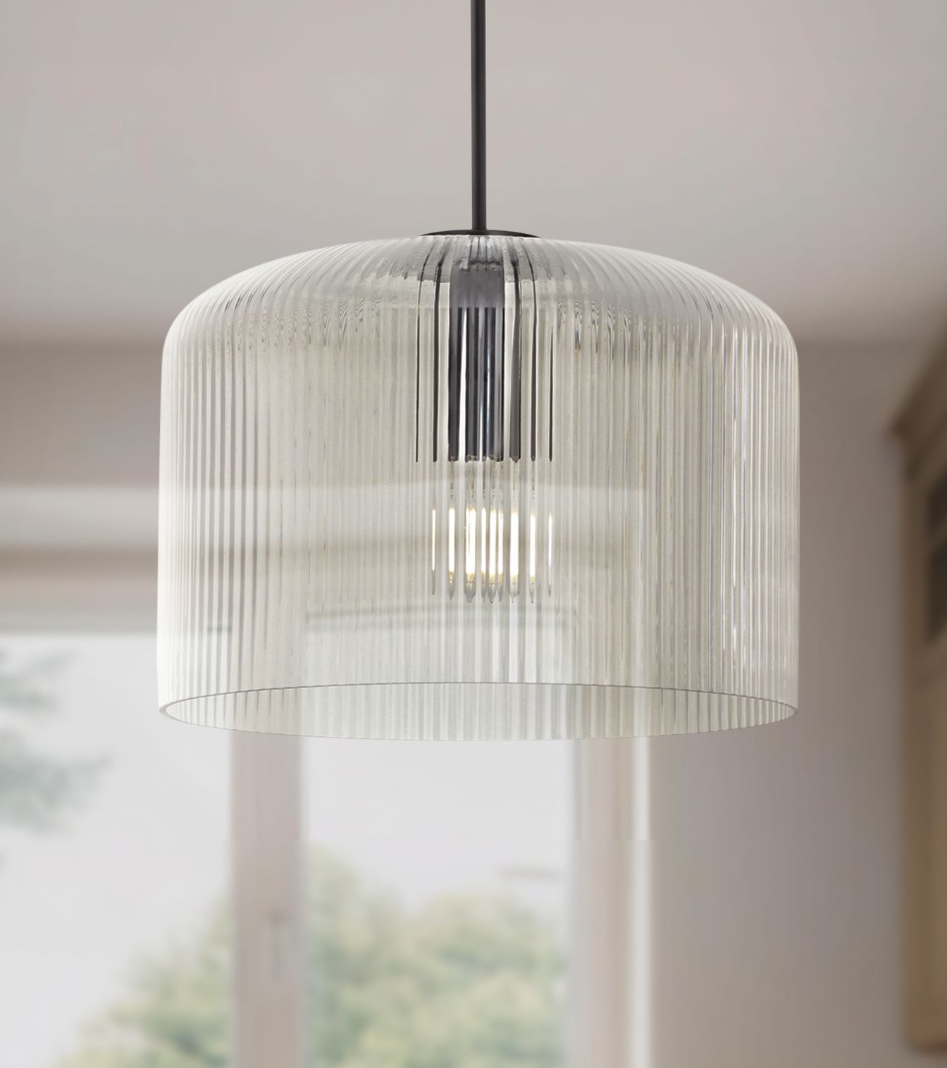 Capital Lighting Clive 14" Carbon Gray Black Iron Glass Pendant Light