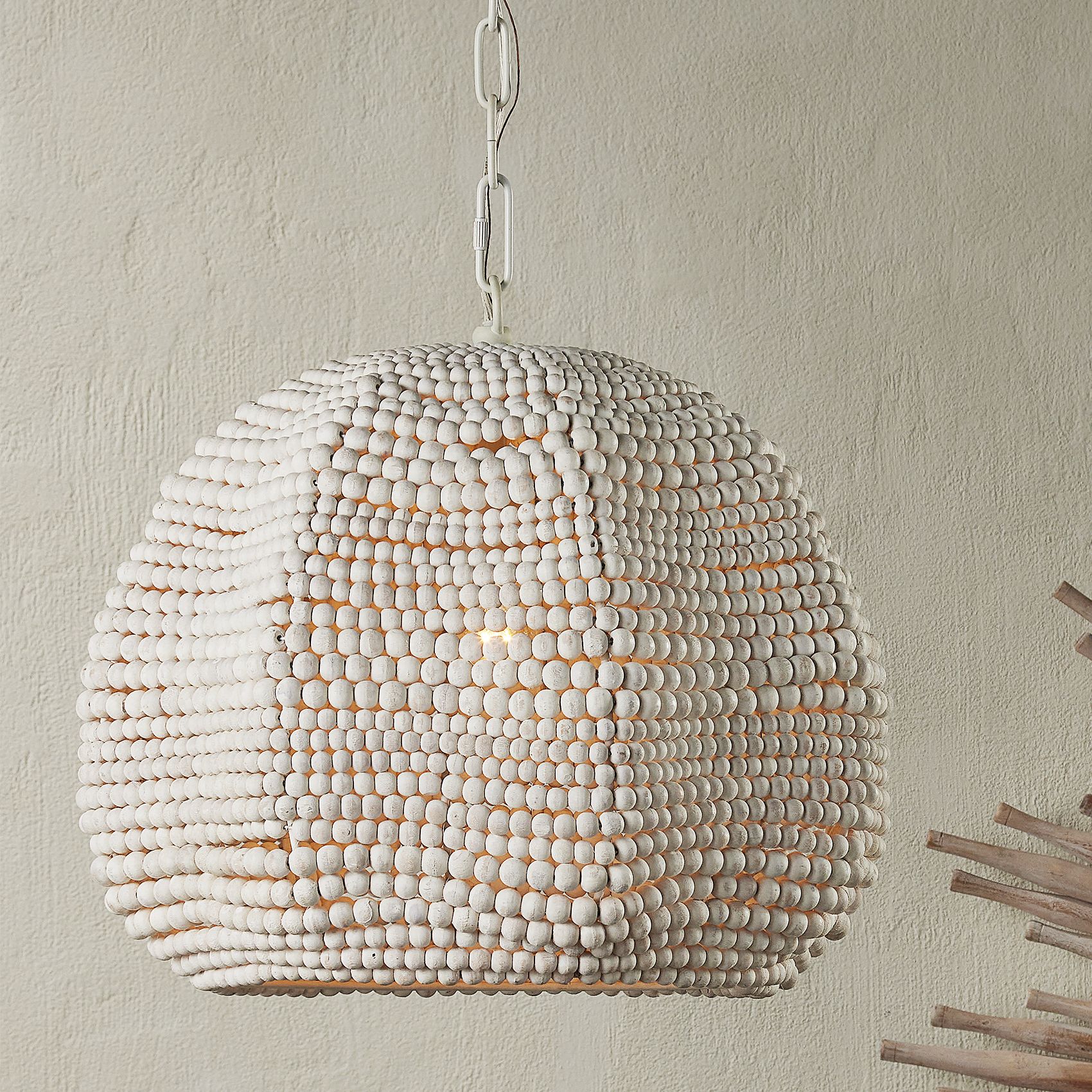 Currey and Company Octavia 19" Whitewashed Wooden Beads Pendant Light
