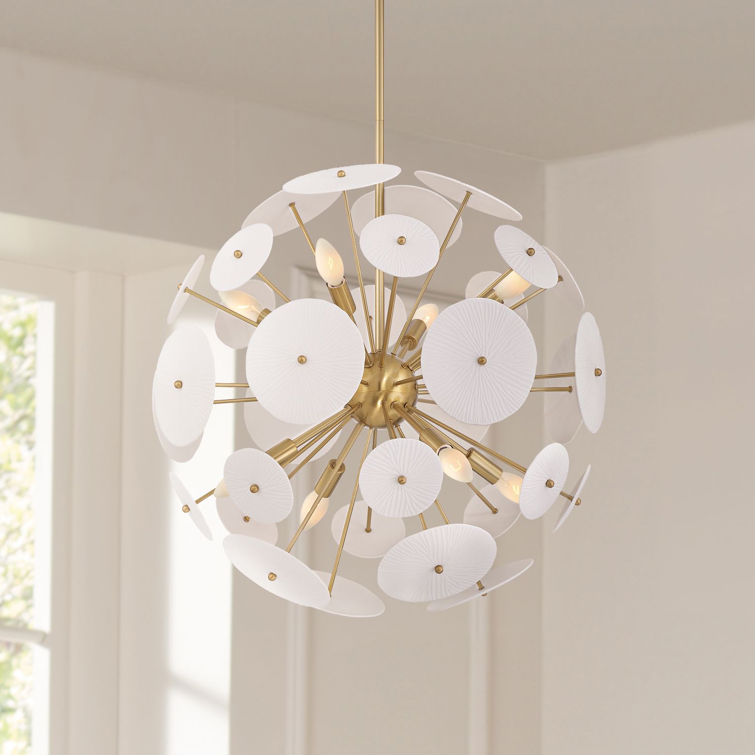 Possini Euro Shelly 23 1/2"W Gold and White Ceramic 8-Light Pendant