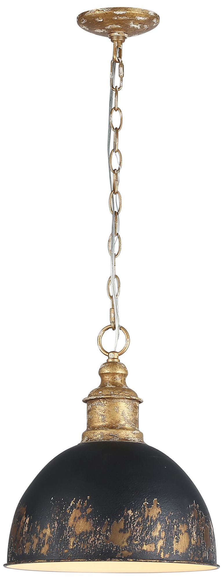 Golden Lighting Alison 12" Vintage Gold Weathered Black Mini Pendant