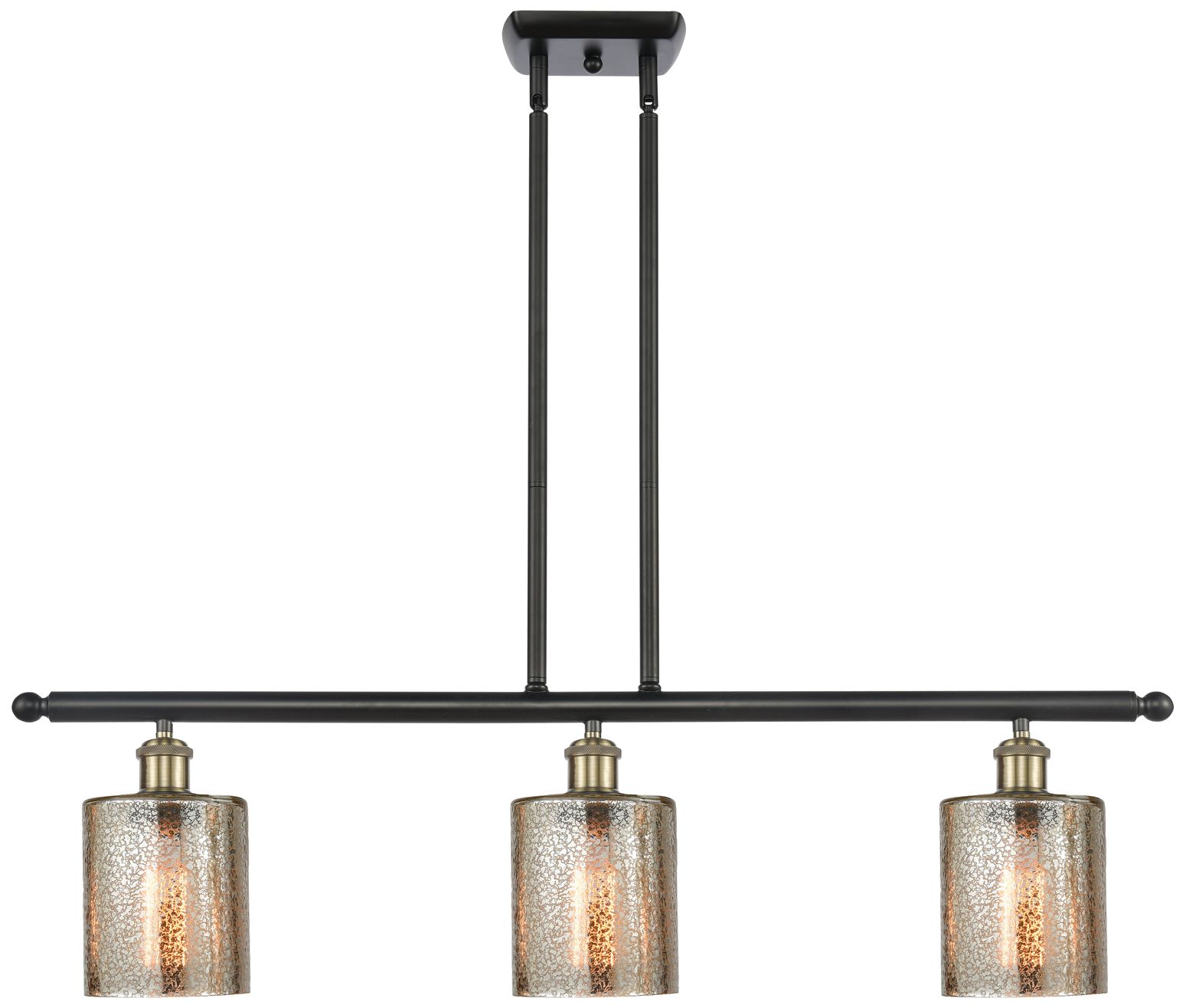 Ballston Cobbleskill 36"W 3 Light Black Brass Island Light w/ Mercury
