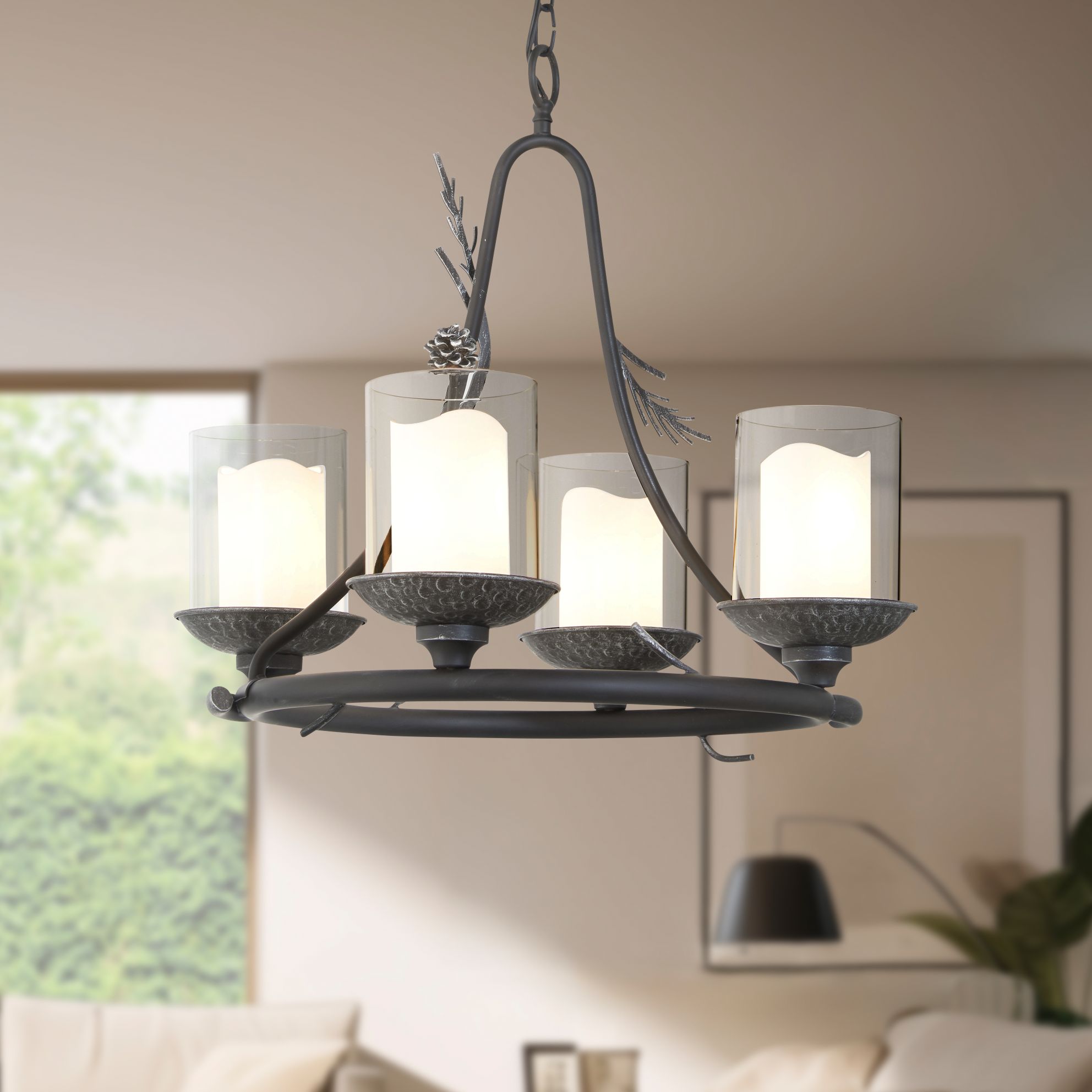 - Traditional four-light chandelier from the Ponderosa Ridge collection by Minka Lavery.