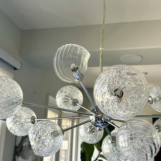 Beautiful lamp & better in person. Hangs well, great warm light. Definitely suggest putting a dimmer on your switch so it's not at full blast. One note, the glass balls looks like cracked glass design, but in fact there's wires inside. It's very cool.
