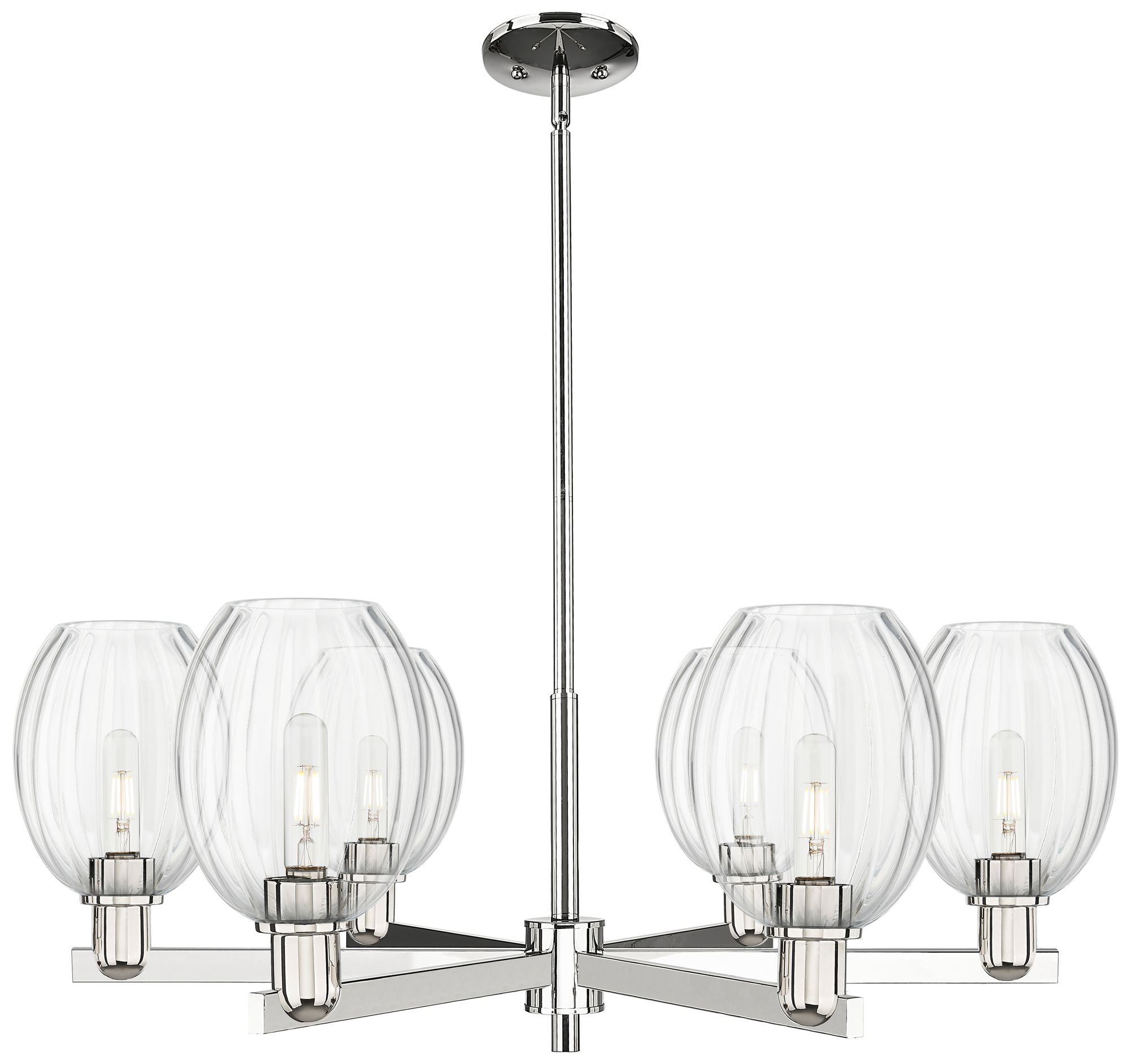 Image 1 Preston 24"W 6 Light Nickel Stem Chandelier w/ Bell Clear Shade