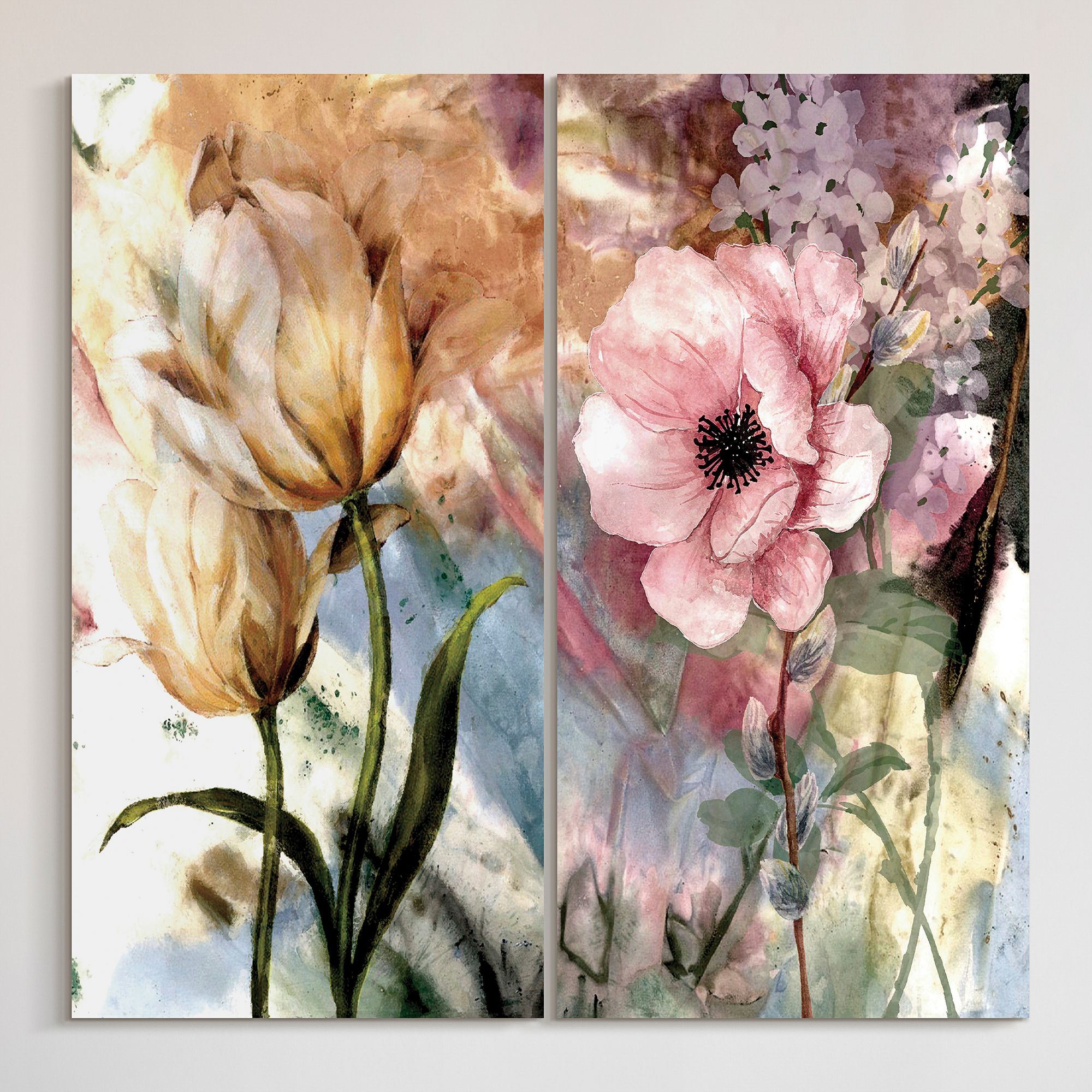 Pastel Fleur 72" High 2-Piece Printed Glass Wall Art Set
