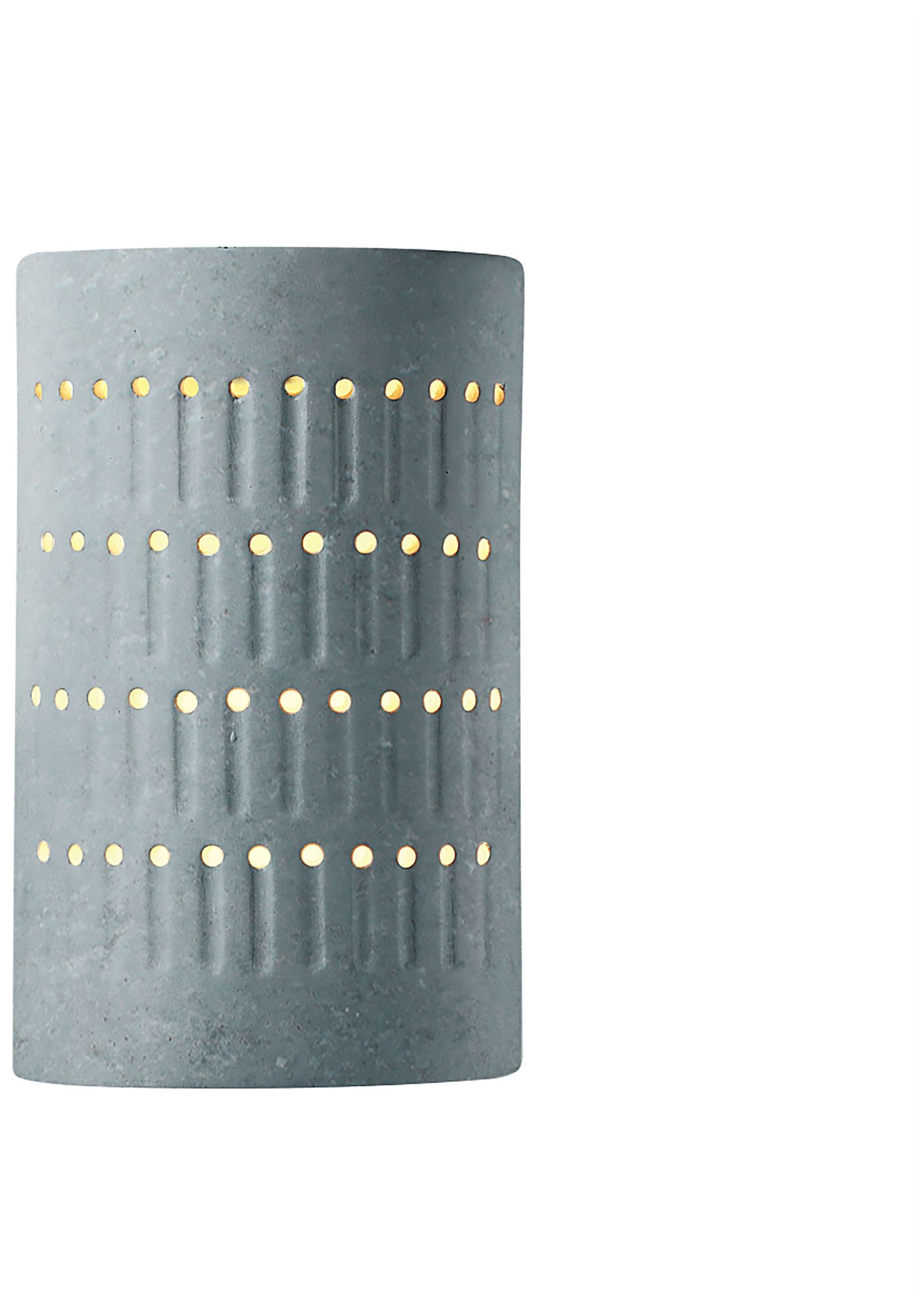 9.5" Ceramic Cylinder ADA Yellow LED Outdoor Sconce w/ Perfs