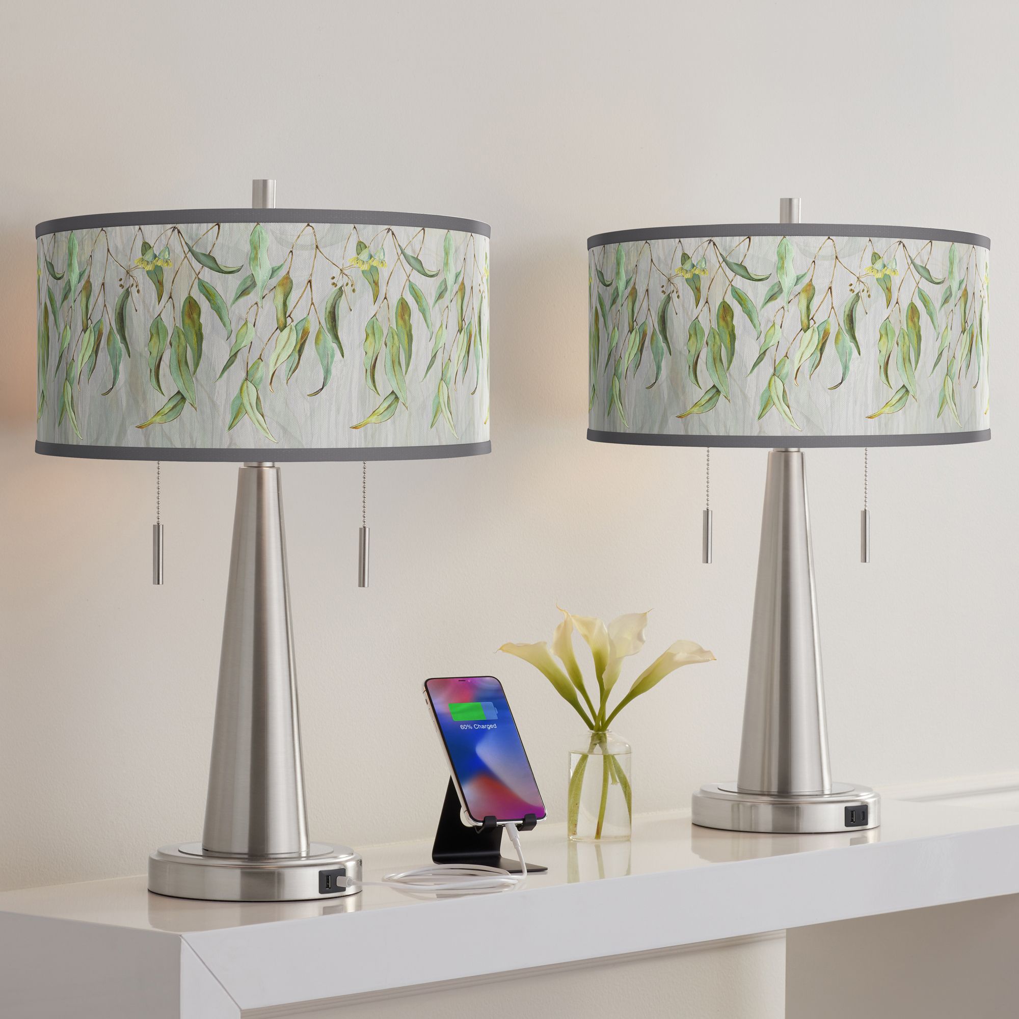 Eucalyptus Vicki Brushed Nickel USB Table Lamps Set of 2