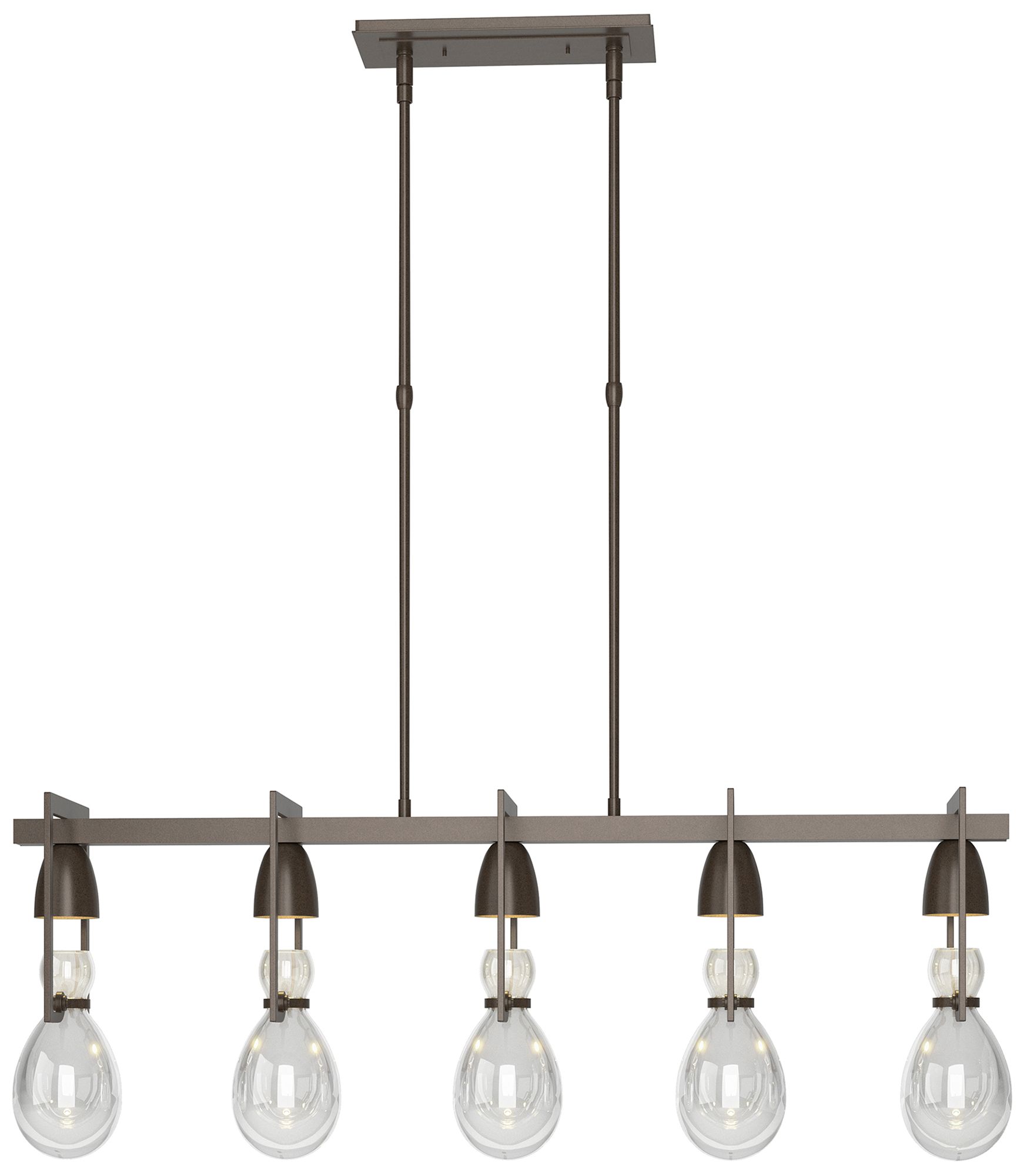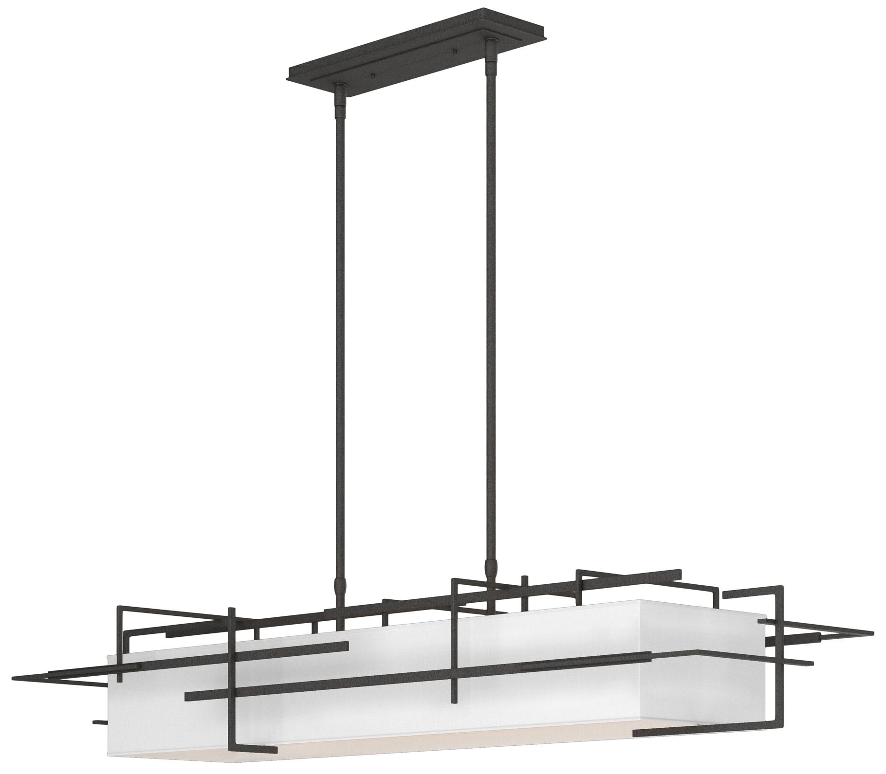 Tura 53.6"W 7-Light Rectangular Black Long Pendant w/ Seeded Glass Sha