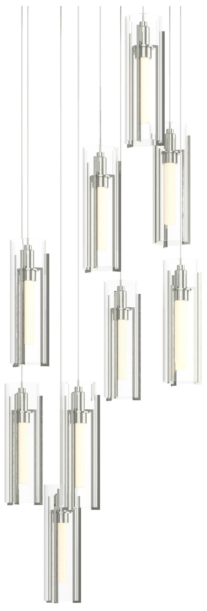 Exos 20.5"W 9-Light Round Sterling Long Pendant w/ Clear Glass Shade