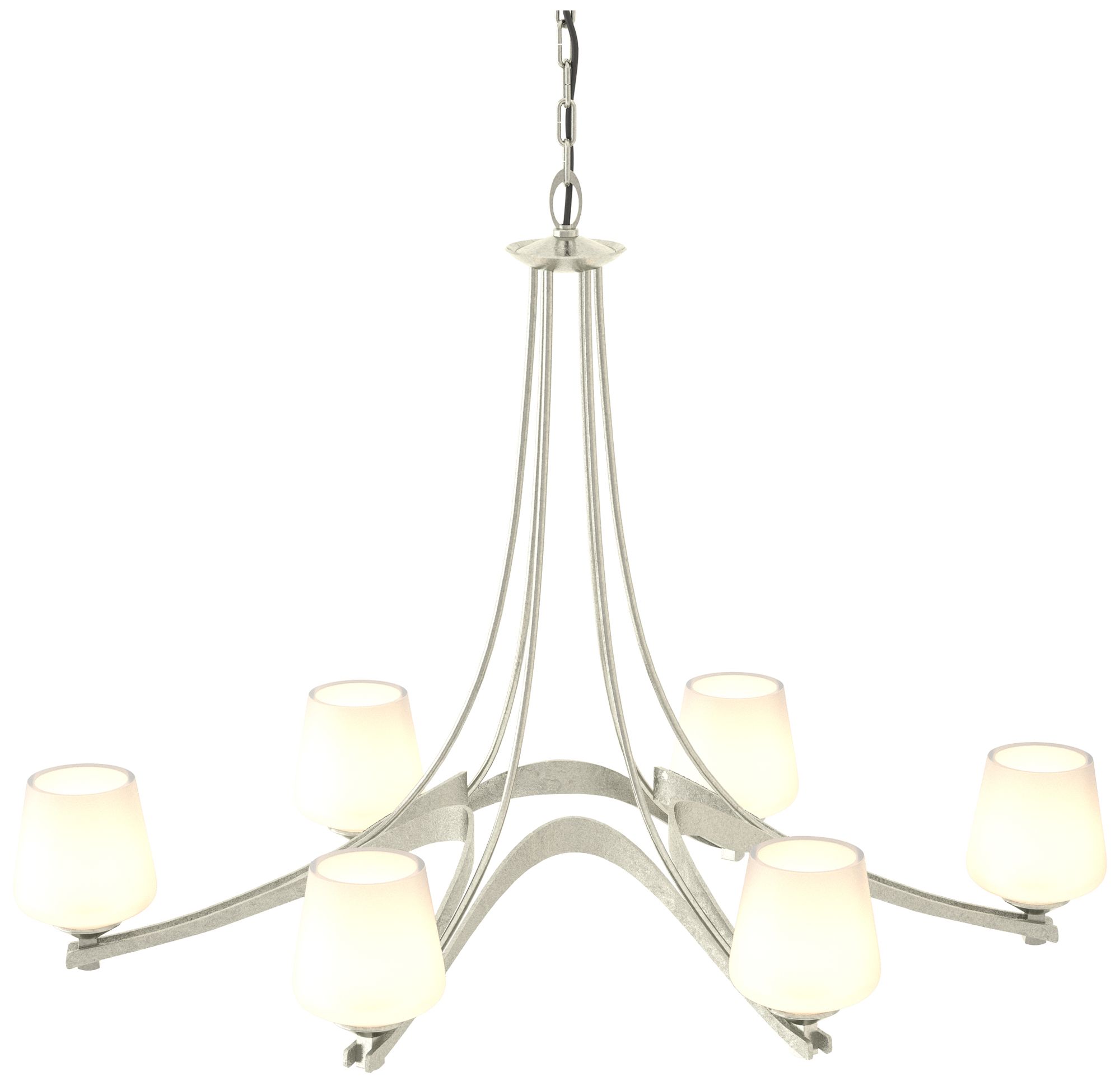 Oval Ribbon 38.5" Wide 6 Arm Sterling Chandelier With Opal Glass