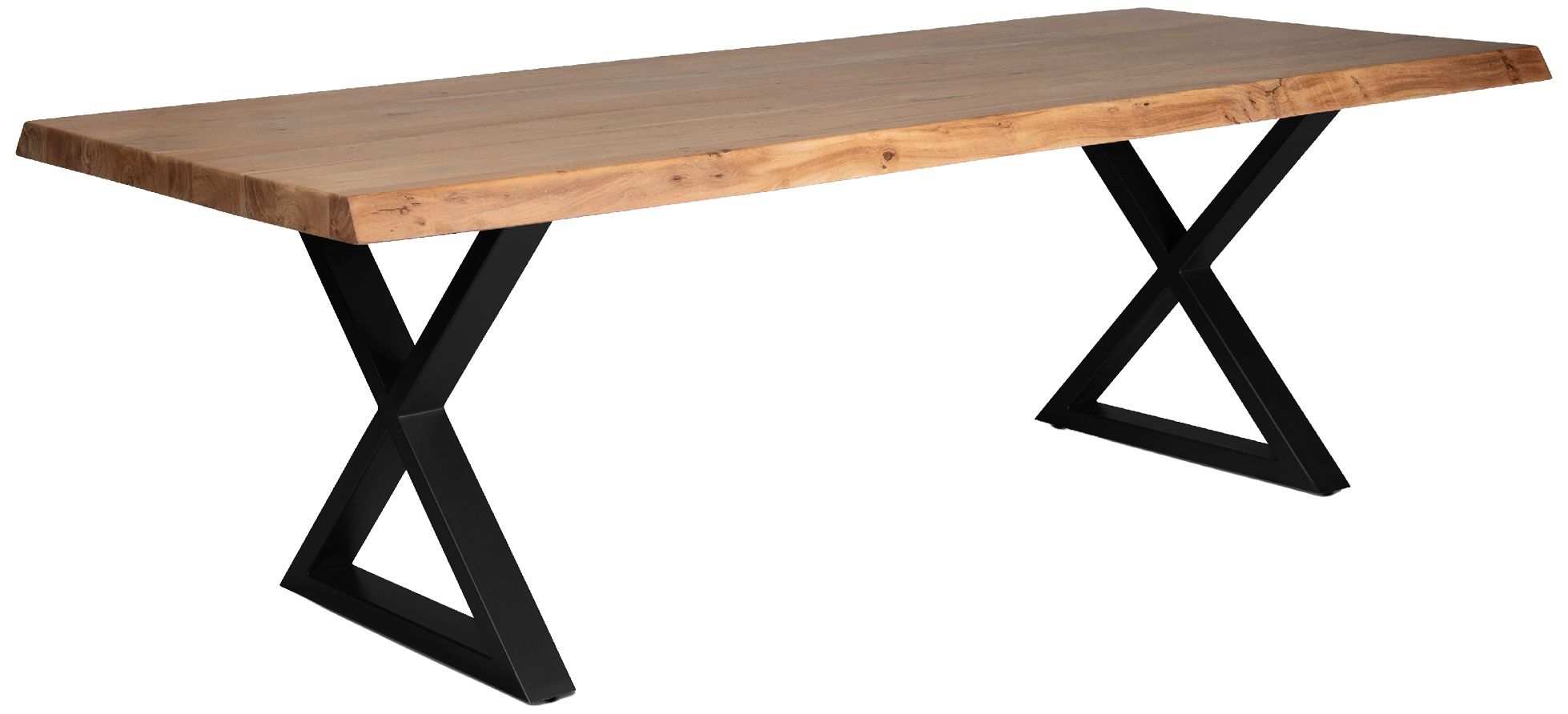 Brooks Dining Table X Base 40" x 92" Teak Top Brass Base